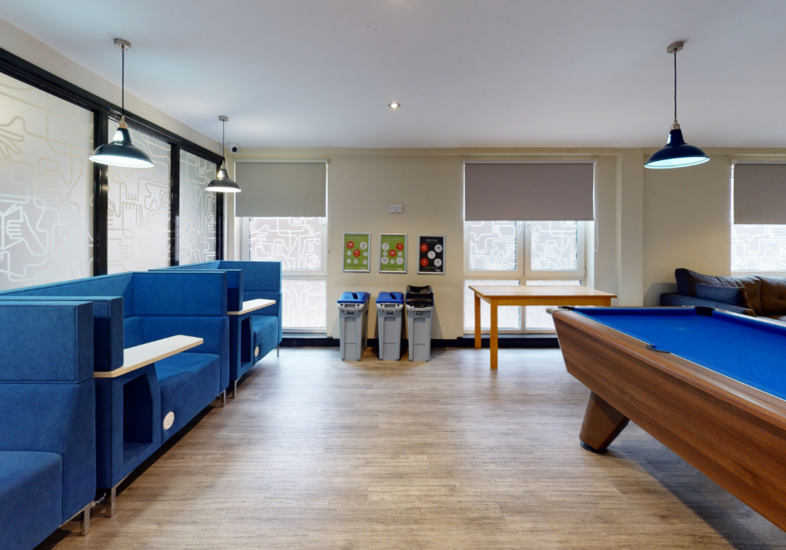 With your own private bathroom, fully fitted kitchenette, small double bed, study desk and chair and plenty of storage, your modern room has everything you need. The building gives you great facilities too with a TV, pool table, outdoor courtyard with decking and seating and laundry facilities.
