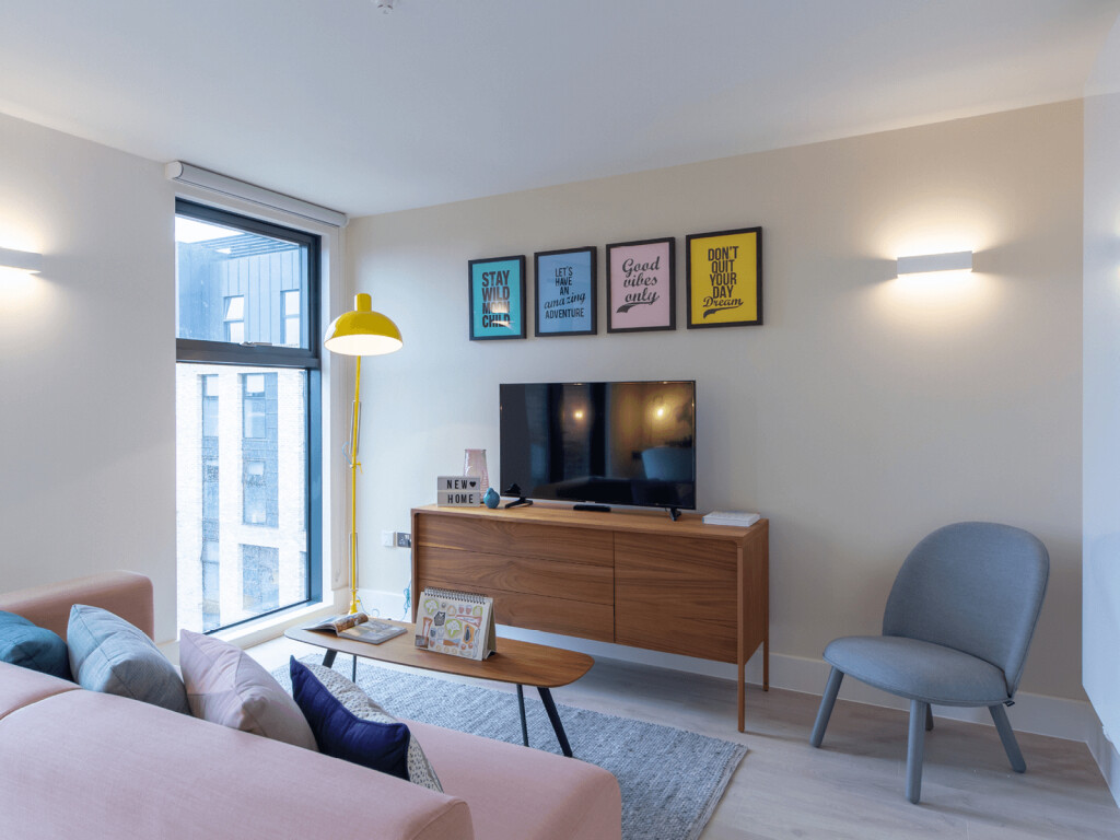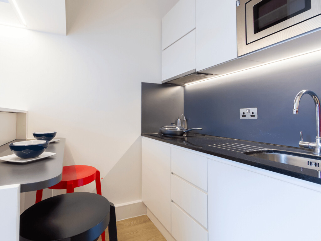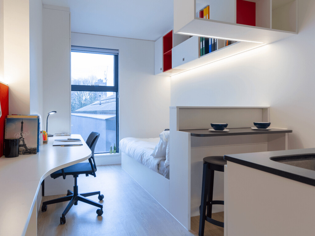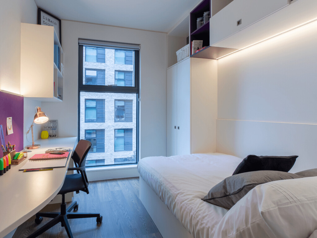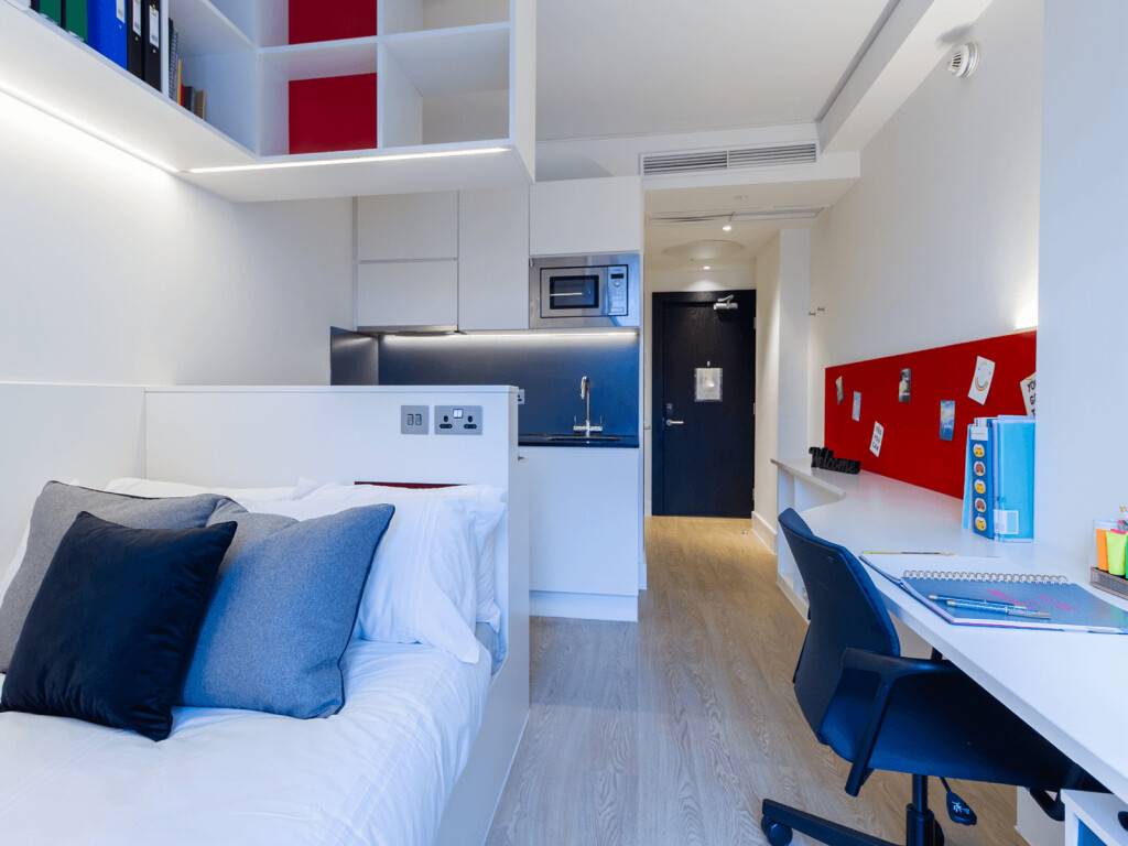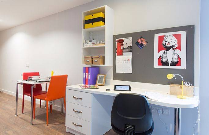 Slam-dunk in the heart of London, these stylish en-suite rooms in apartments and stunning self-contained studios are for those who adore inner-city chic. Moments away from the iconic River Thames, the surrounding skyline is peppered with well-known landmarks. We're only a few minutes from the tube and so many of London's leading universities including Kings College,Imperial,University of the Arts and London South Bank University.Every room is a study of substance and style. Move straight in for the roomy work area, small double bed, ample storage, en-suite shower room and shared kitchen/living area. If your heart is set on a studio you'll get your own high-spec kitchen area with breakfast bar, and you can share as a couple at no extra charge. Our quiet study room is available 24/7 and the seminar room with projector can be booked just for you. And if you're wondering where everyone likes to hang out then follow the buzz. There's always loads going on!