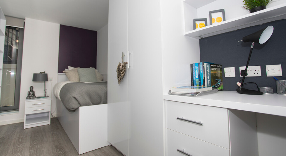 The en-suite shower room boasts boutique styling including porcelain tiles and designer fittings, while elsewhere in the stylish student accommodation you will find high quality durable furniture including workstation with adjustable task chair, wardrobe units, bookcase, dining table and chairs.