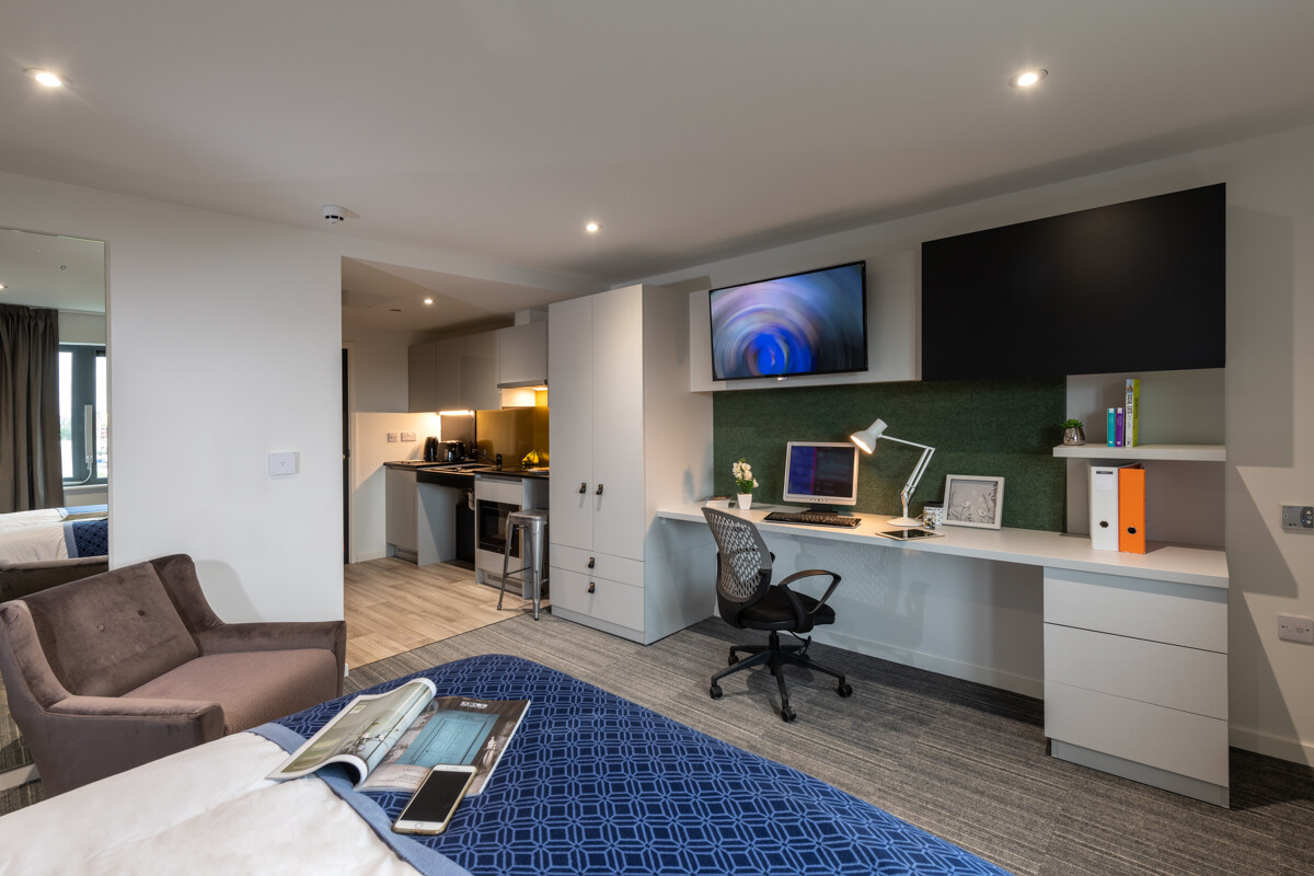 A range of self-contained one-bedroom studios are on offer, with some studios on higher floors boasting amazing views across Westminster and the Houses of Parliament.