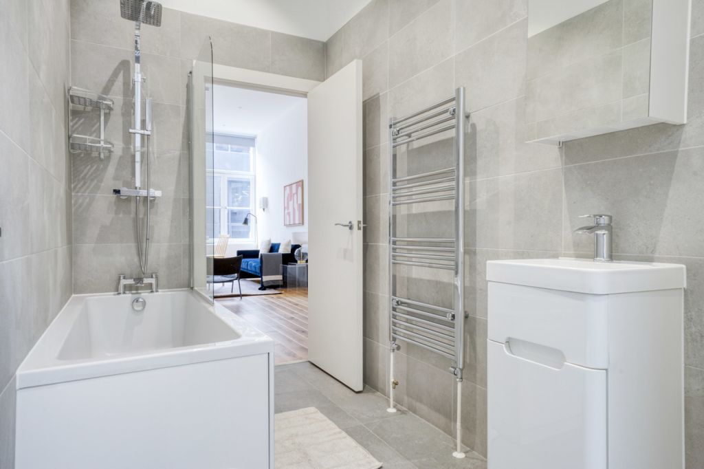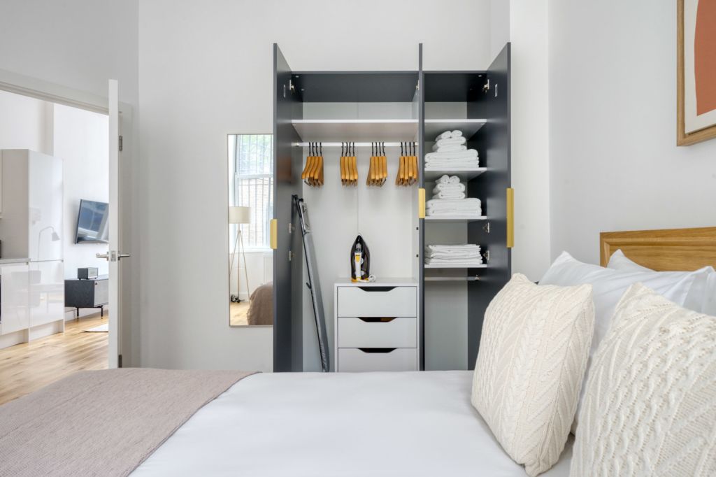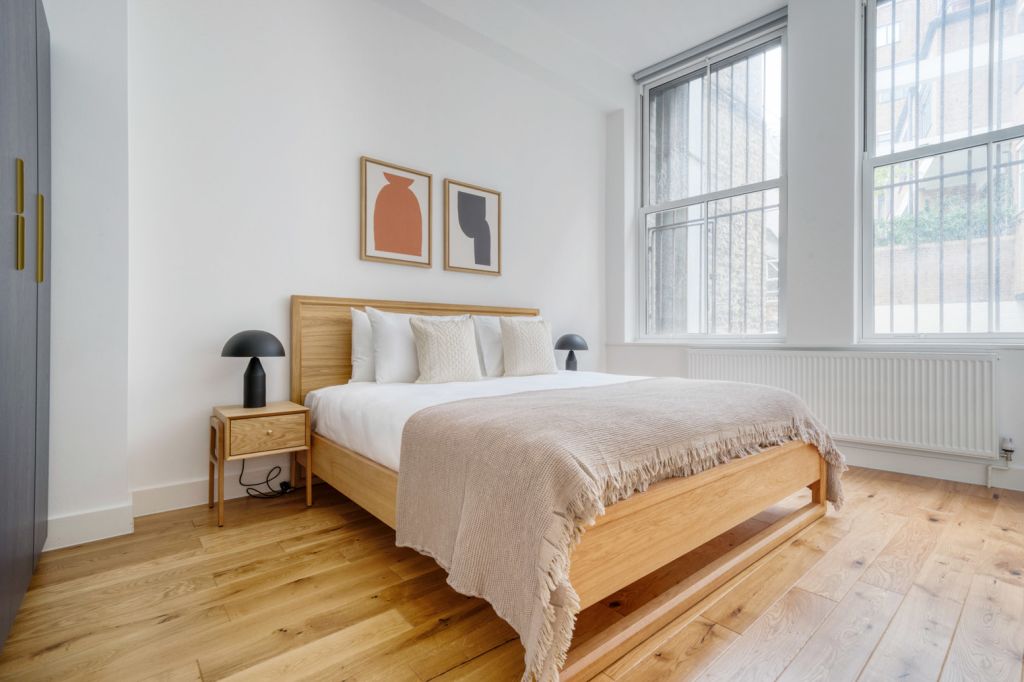 Discover the best of London, with this one-bedroom Clerkenwell apartment with views over the city. It’ll be easy to simply show up and start living in this elegantly furnished apartment with its fully-equipped kitchen, comfortable living room, and our dedicated, on-the-ground support.Thoughtfully designed with bespoke finishes, modern furnishings, and a fully-equipped kitchen, you’ll enjoy that “I’m home” feeling with this apartment. Whether you’re lounging in your exquisite living room streaming the latest and greatest entertainment on the smart TV or premium wireless speaker, or getting some well-earned rest on the superior quality mattress with luxury linens, you’ll fall in love with everything this Clerkenwell apartment has to offer. This apartment also offers in-apartment laundry. Sleeping Arrangements Super King Bed, 180cm Amenities Building amenities unique to this one-bedroom include an on-site: – Pet FriendlyA few things to note:Building amenities may have an extra cost.Pets are welcome, though weight limits and breed restrictions apply and may incur fees.Notice: Displayed prices and data are not final, and should be used for informative purpose only. They are not contractual or binding. Energy pass This building is not subject to EnEV.Sandwiched between the City and the West End, Clerkenwell is where the creative minds of the arts and other forward thinkers meet. On the exterior, the streets have maintained their pre-Victorian architecture and village-like charm, however inside these historic buildings reside the best architects, designers and artists in the creative industry. The neighbourhood is still a vibrant and trendy destination for Londoners, with a plethora of gastropubs and Michelin-starred restaurants to explore. Clerkenwell is also home to Leather Lane and Exmouth Market, for those epicurean treats. For cultural indulgence, walk along the pebbled streets to the renowned Charles Dickens Museum or enjoy an evening of dance performances at Sadler Wells Theatre. This furnished flat in Clerkenwell keeps you connected to a large transport network with access to three tube stations including Angel, Barbican and Farringdon.