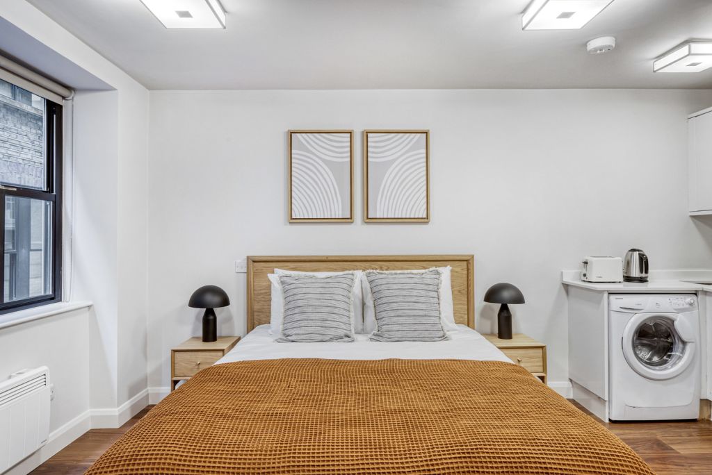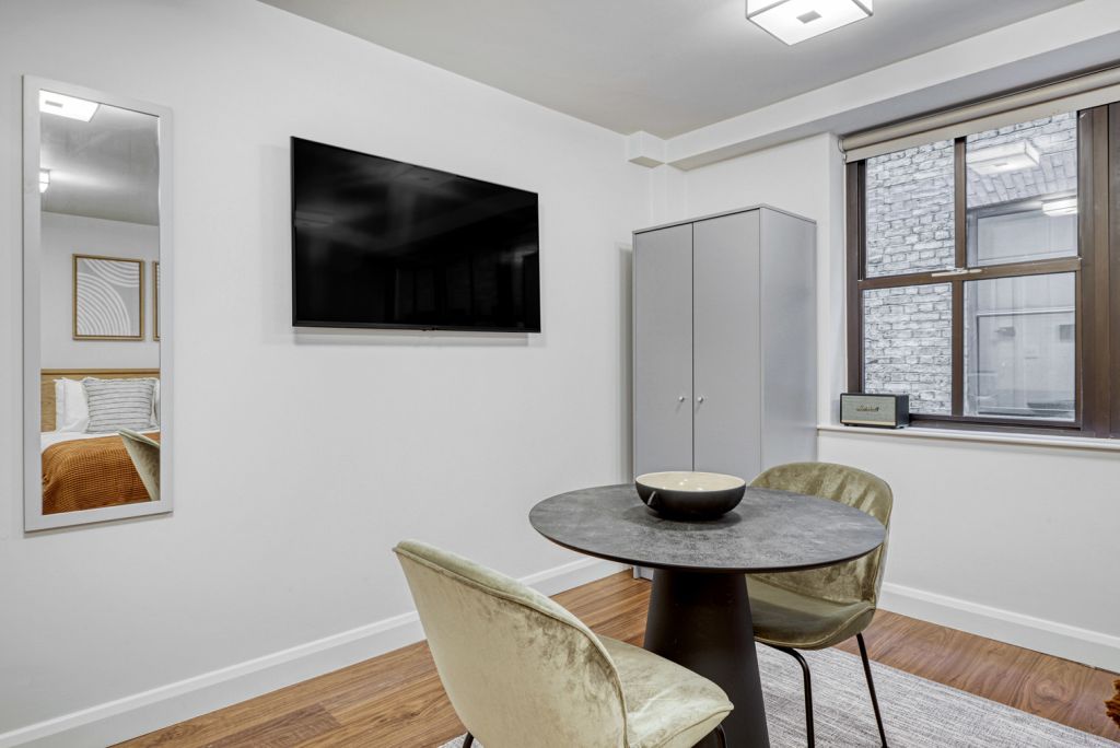 Show up and start living from day one in London with this roomy studio apartment. You’ll love coming home to this thoughtfully furnished, beautifully designed, and fully-equipped City of London home.As with any apartment, you’ll find a thoughtfully designed space complete with beautiful furniture and a fully-equipped kitchen in this studio property. And, thanks to our superior quality mattresses, luxury linens, and towels, you can relax knowing you’ll always feel comfortably at home. When you’re ready for some fun, you can take in the London vibes or bring the entertainment to you with the premium wireless speaker or smart TV. This apartment also offers in-apartment laundry. Sleeping Arrangements King Bed, 150cmA few things to note:Building amenities may have an extra cost.Notice: Displayed prices and data are not final, and should be used for informative purpose only. They are not contractual or binding. Energy pass This building is not subject to EnEV.