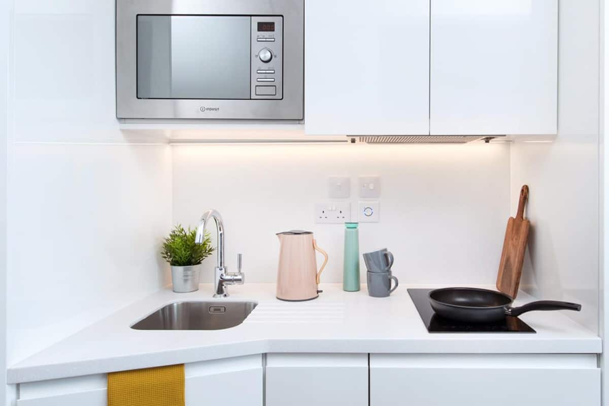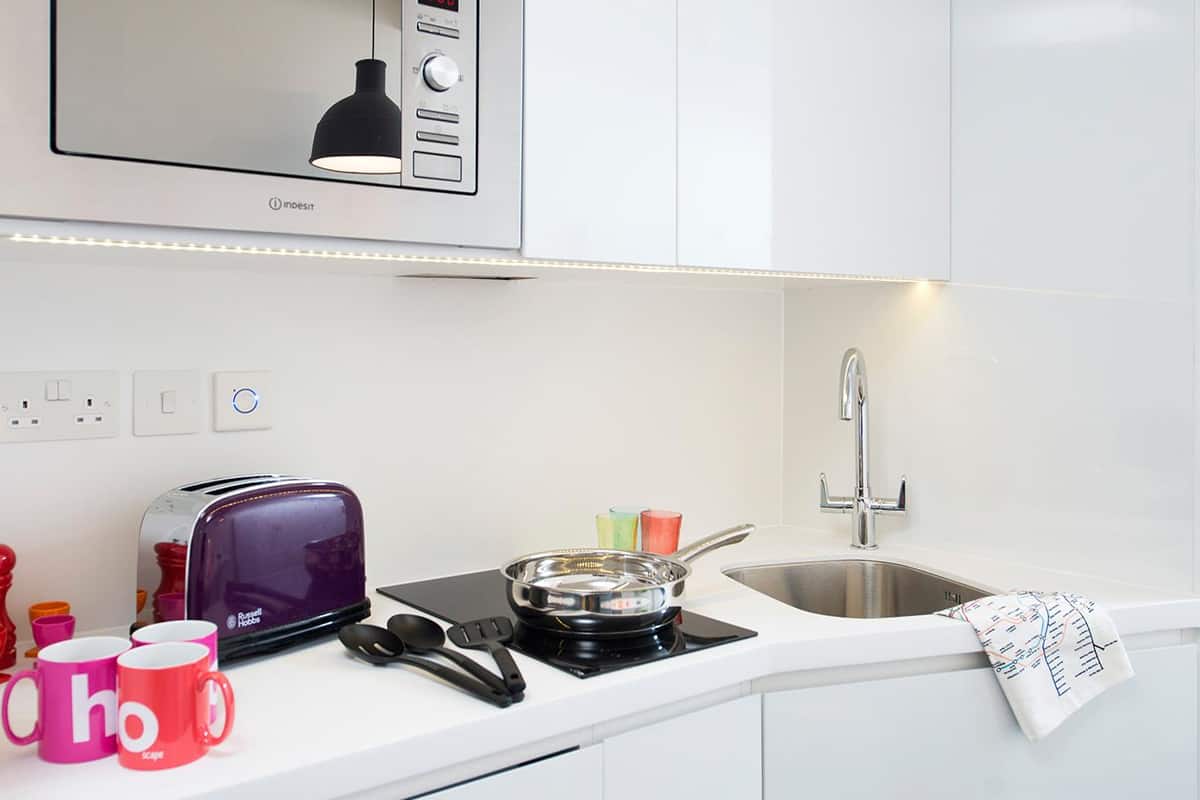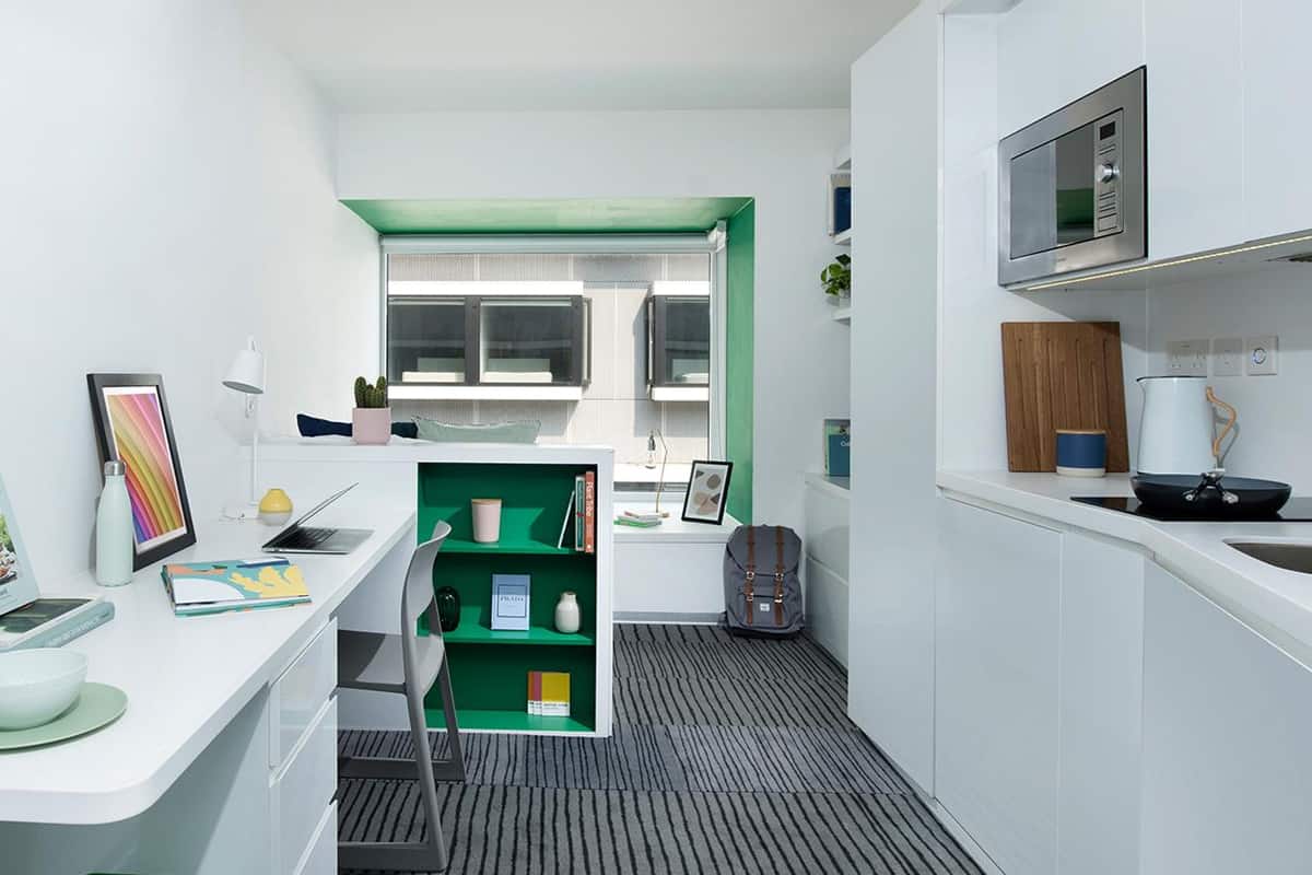 GoBritanya- Shoreditch Residence offers studio apartments to students. All rooms are fully furnished with storage and work spaces, microwaves, electric stove, shelves, laundry room and much more.