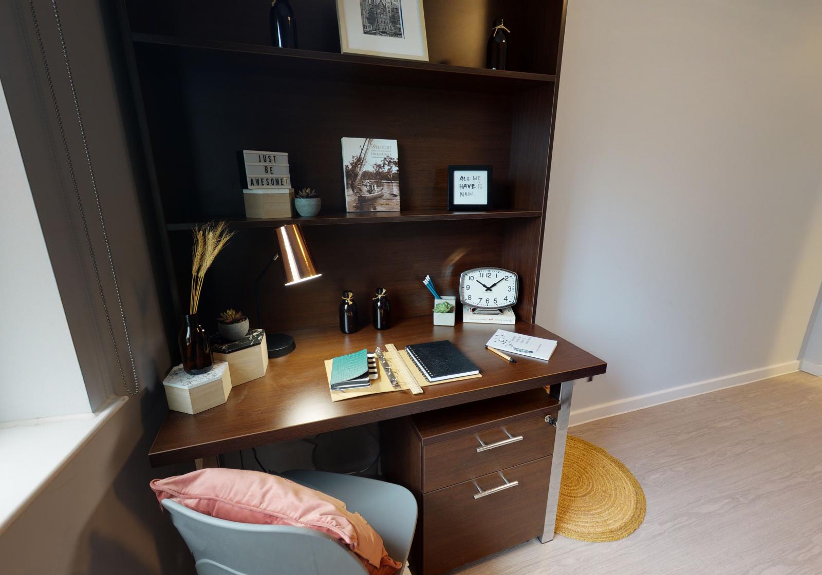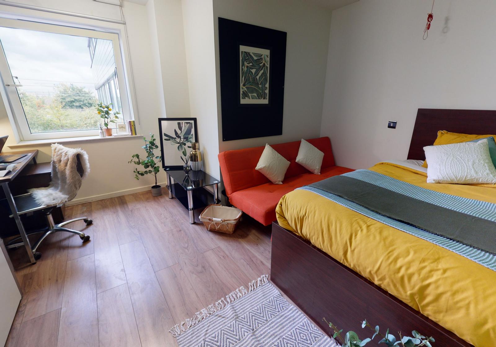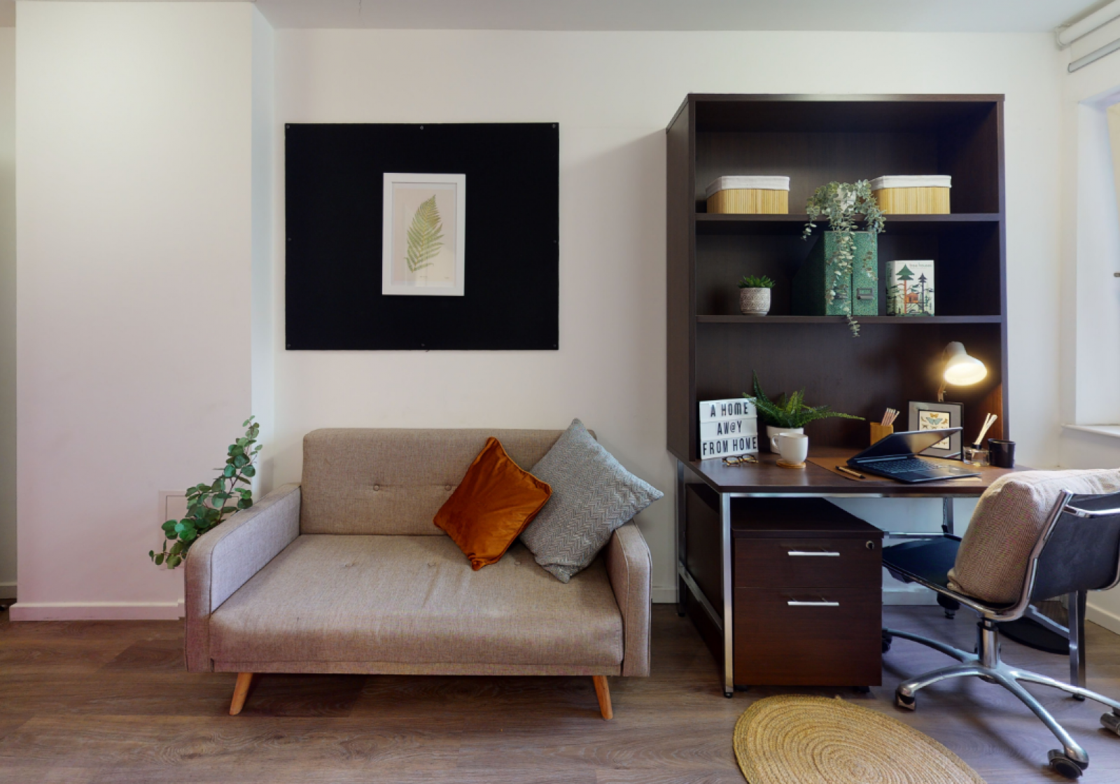 At 20-23 sq m in size, these are our most spacious en suite rooms and come with extra features like a stylish sofa and coffee table. This room also includes a free weekly clean of the shared kitchen area.