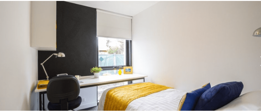 The amenities typically included in student rooms in Melbourne include air conditioning, hot water, a bed, Dishwasher, a microwave, Electric Stove, WiFi, Fridge, Bookshelf, and a desk. Some of the more luxurious options like Student Living - Vivida Melbourne, Exeter may also come with a private bathroom and balcony/terrace.