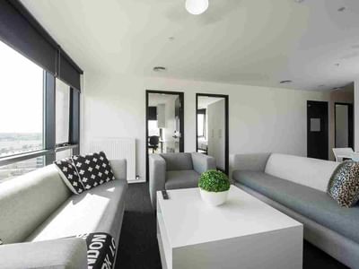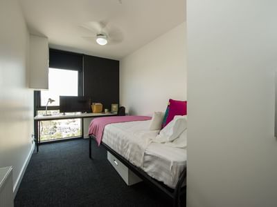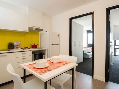 Unilodge Victoria University has a variety of apartments for students to choose from including studio apartments, 2 bedroom apartments, and 6 bedroom apartments. All rooms are comfortable and fitted with a range of inclusions such as King single or a spacious double bed, a kitchenette with full size fridge, cook top, range hood and microwave, wardrobe and shelves, study desk and chair, with lamp, and bathroom(s).