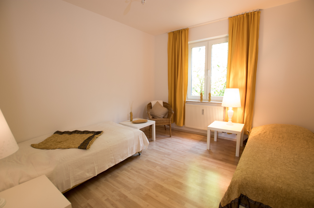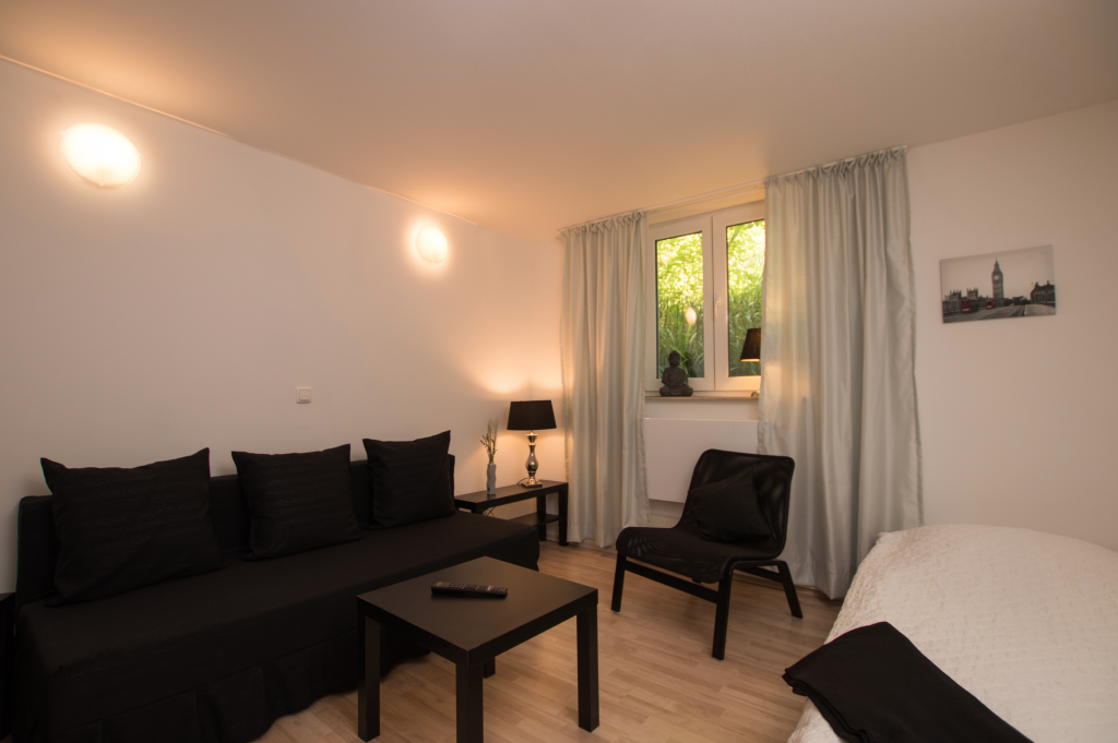 The apartment is offering a separate and cozy living and bedroom, a large scale kitchen and a garden as well as terrace access. The apartment is very bright and the interior is elegant and modern. The excellent fit for long stay guests. Further amenities include overall WLAN access and several on site parking options. It is a quite neighborhood, nevertheless an easy and quick connection to the city centre. Notice: Displayed prices and data are not final, and should be used for informative purpose only. They are not contractual or binding. Energy pass Energy pass not available, yet / In application process