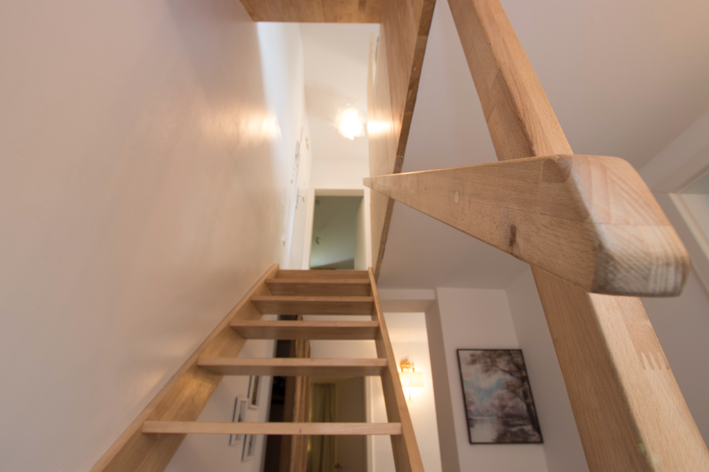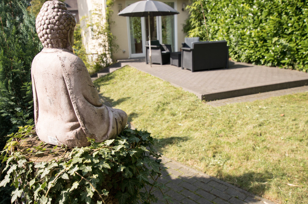 The four star premium apartment is located in a quite neighborhood on a small hill from where you can oversee the city. The object is located in close distance to the city Essen as well. The access to the train station is convenient and the train takes 5 minutes to Essen. The large scale garden offers great opportunities to relax or having a BBQ.