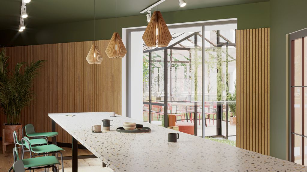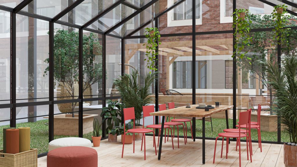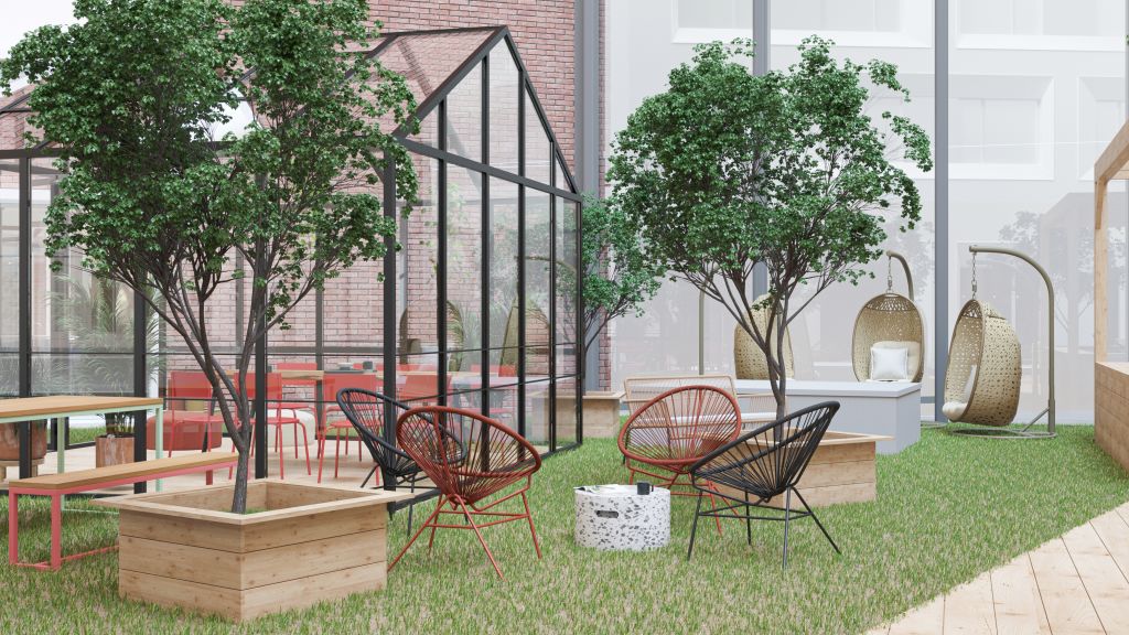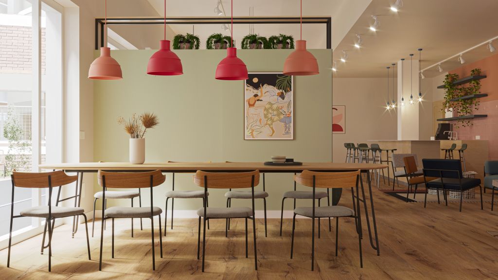 The property is located in a busy residential area in the Münster Hansaviertel. There are a number of bus and train lines nearby that connect you to regional and national destinations. You can walk to a few restaurants, bakeries, cafes, doctors and two shopping malls. You will also find several bars, green spaces and parks, fashion shops, fitness studios and bookstores on site.Community Spaces- Space: Literally “hang out” in the hanging chairs overlooking the terrace or host a listening party with your favorite music on vinyl with a drink from the bar- Dining Room: Celebrate your birthday with a dinner party or organize a cooking class- Terrace: Outdoor space that’s a perfect urban escape to connect with nature or practice yoga- Co-working: Enjoy the views of outside while taking pride in how productive you are in the glass house, located on the terrace- Meditation Room: Destress after a long day with a centering practice or getting a custom workout with the Vaha Mirror- Laundry Room: App-based for the most hassle-free laundry you’ve ever doneBook now!