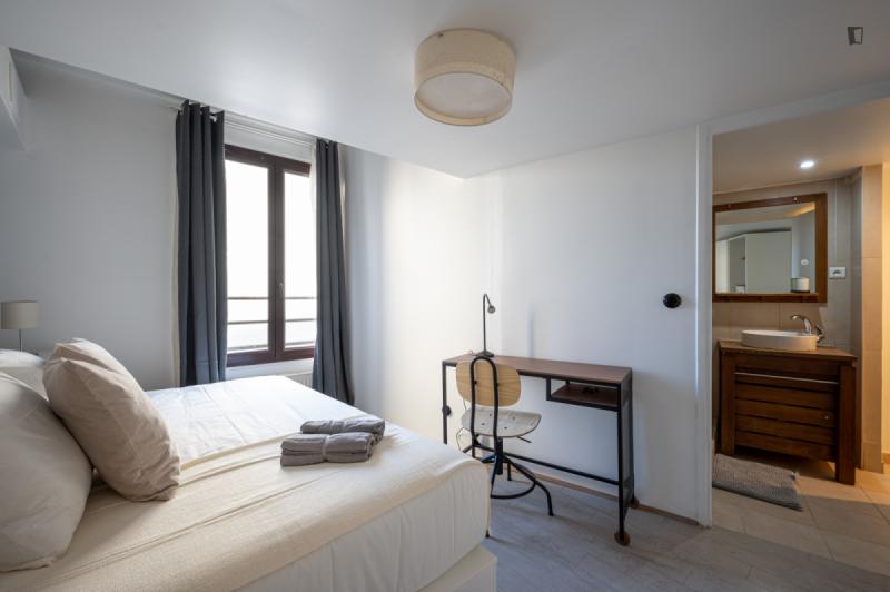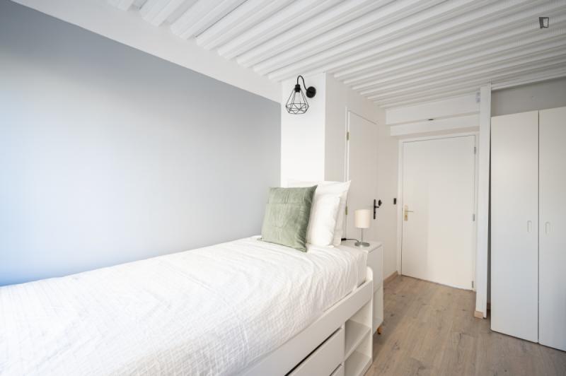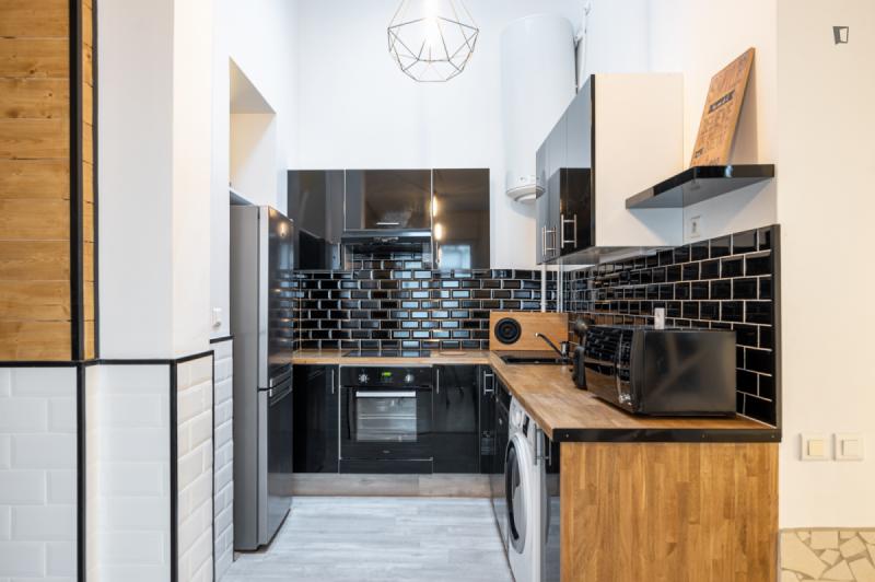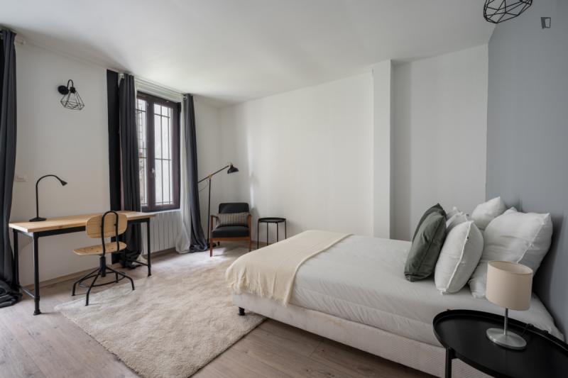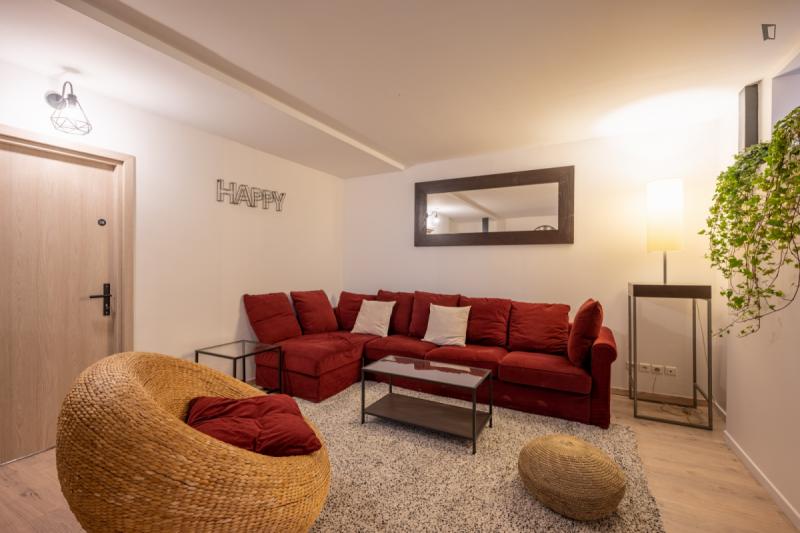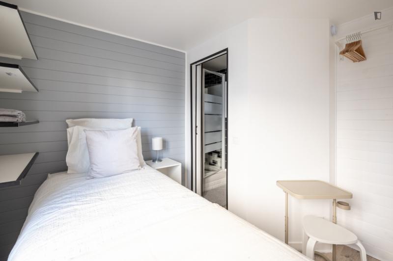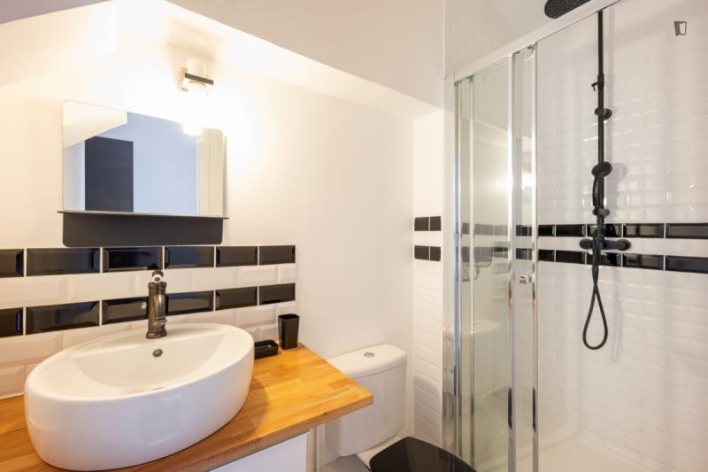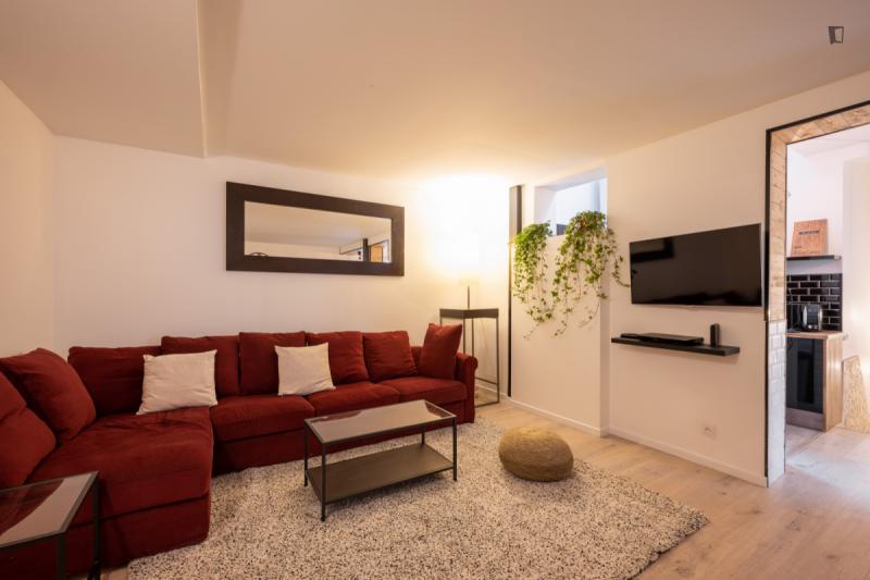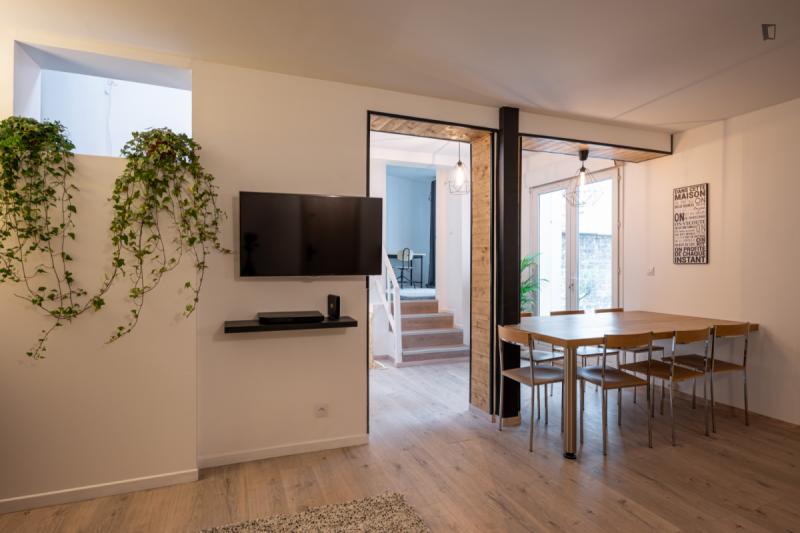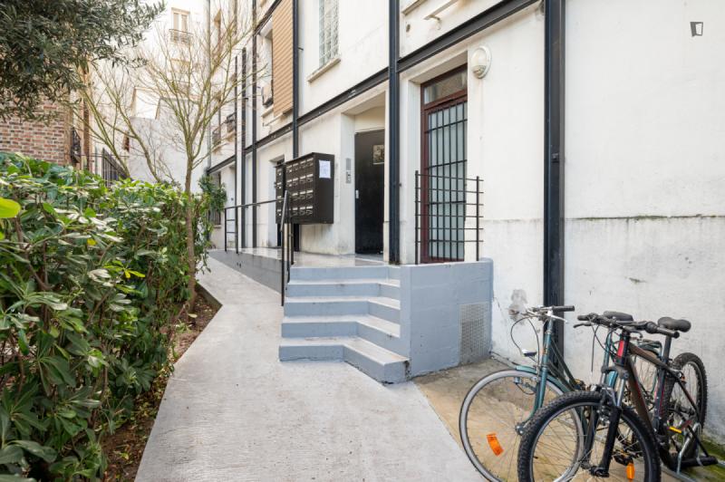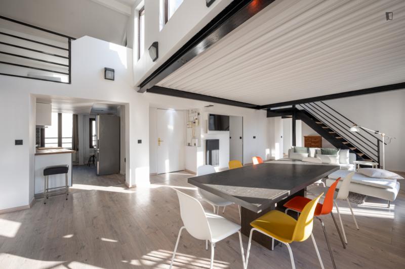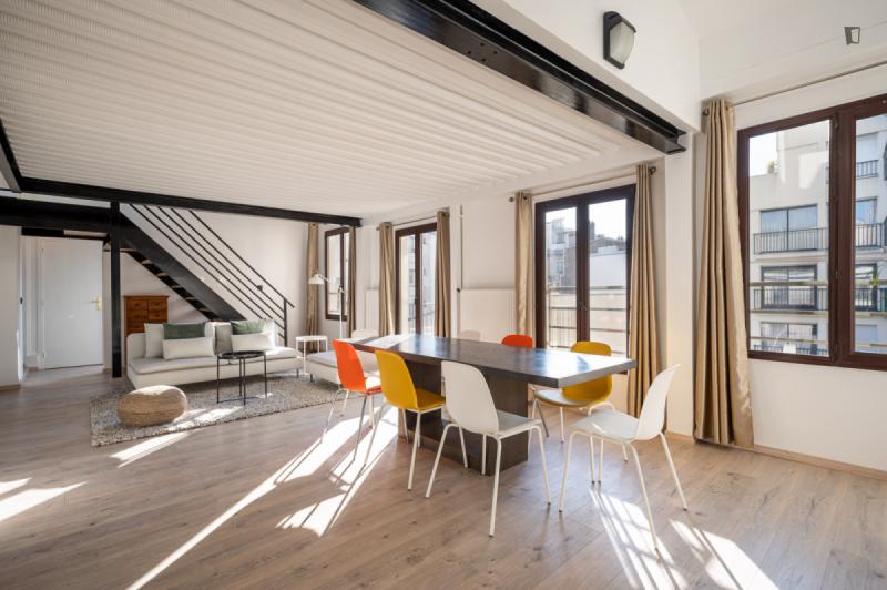 It’s a 154 sqm triplex apartment with a rooftop. You will find a community kitchen and three huge living areas in the flat. The kitchen is fully equipped with two fridges, a combiner’s oven and a coffee corner. The main living room has a dining / working table as well as a sofa area incl. smart tv. The two other living rooms are on the third floor with direct access to the rooftop (exclusive for our co-livers). Next to it there’s a cinema area with a projector for long movie nights. It’s an old industrial building converted into a residential building. In the building, there are multiple other private apartments, thus it’s a quiet neighborhood. The Charonne district used to be a village before becoming part of the city of Paris in 1860. It now belongs to the 20th arrondissement, and has kept the charm of the capital’s old suburbs, with its cobbled streets and low-built houses. Place de la Reunion is located at the corner of the streets Alexandre Dumas, de Terre-Neuve, de la Reunion, Vitruvius, and du Sentier de la Pointe. The building can be reached on line 2 at the Alexandre Dumas station and by line 9 at the Maraichers station, as well as bus line 26. The farmers market runs on Thursdays and Sundays from 7am to 2.30pm.