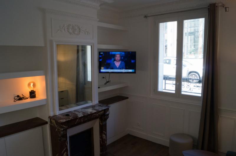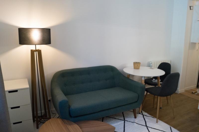 Beautiful 2-room flat of 23m², modern, clear, quiet and secure, completely furnished (you don’t have to bring anything) with a totally optimized space. The property is located on the ground floor overlooking the courtyard and the street and is 6 minutes from the metro L7 (Tolbiac) and 10 minutes walk from Place d’Italie (lines 5, 6 and 7). You can find at 2 minutes: bakery, greengrocer, supermarket Carrefour, pharmacy, Velib station and also at 10 minutes: shopping centre Italy 2, district of the butte aux cailles with many restaurants. The Cité Internationale Universitaire de Paris is even less than 20 minutes away on foot. The property consists of a living room with table and chairs, sofa, connected TV, fully equipped kitchen (fridge, oven, microwave, hotplates), full set of crockery, a bedroom with double bed (linen provided), a bathroom with shower and washing machine + WC and also has a keypad and a mailbox. Accommodation eligible for APL (approximately 200€).
