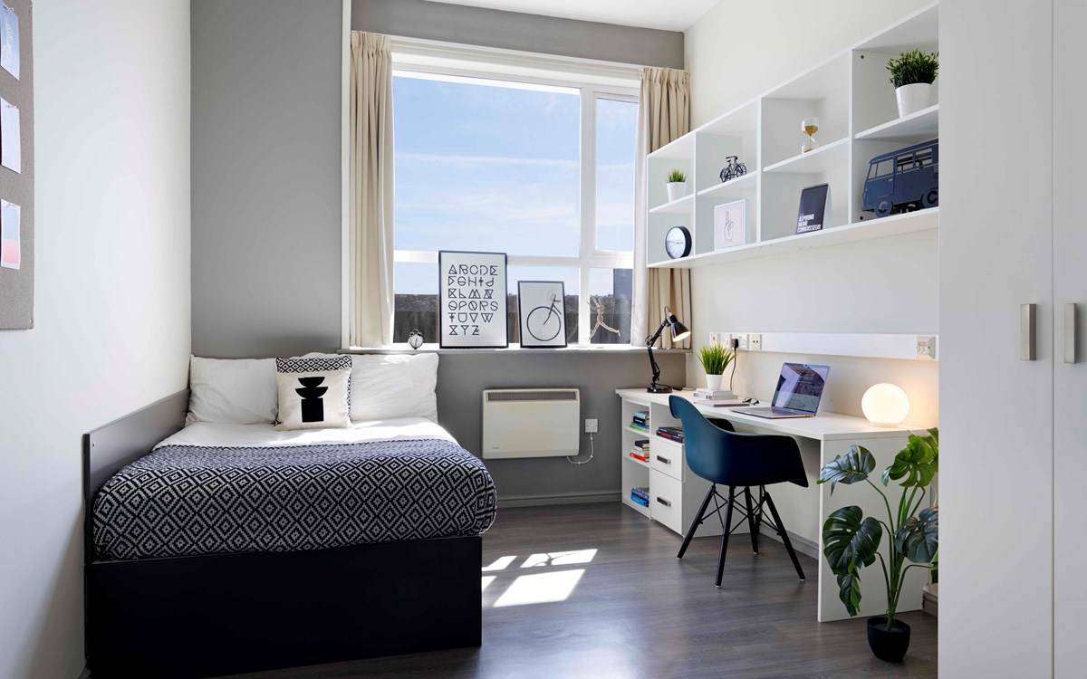 The University of Plymouth, Drake Circus, and the major high-street retailers are all conveniently close to the apartment. The city center is directly at your doorstep, and Drake Circus, a shopping mall, and bars like Walkabout and Slug & Lettuce are all within 5 minute’s walk. This student housing offers a beautiful selection of studios or shared flats, both of which include a spacious bed, a personal workspace, and lots of storage. The quality of the bathrooms in each unit is amazing. Additionally, studios come with amenities like a contemporary, fully functional kitchenette.
