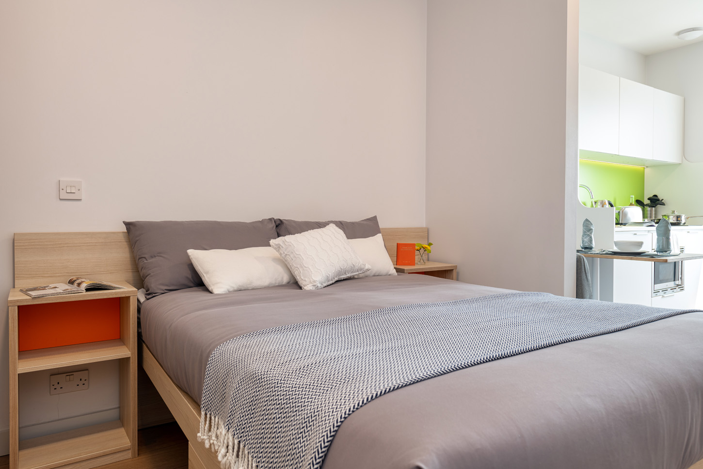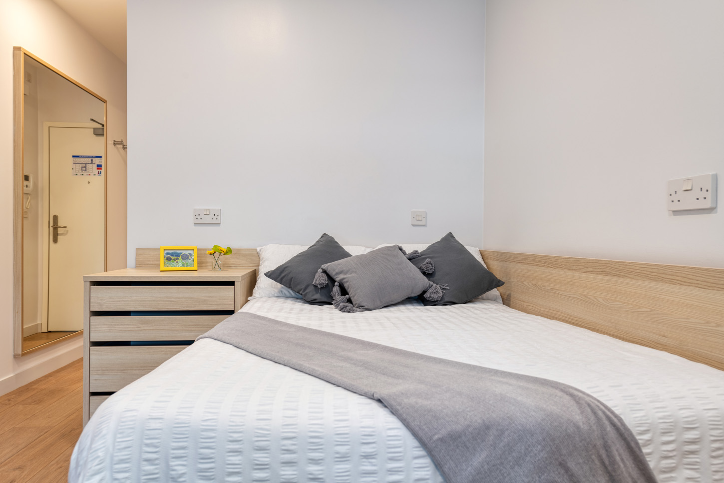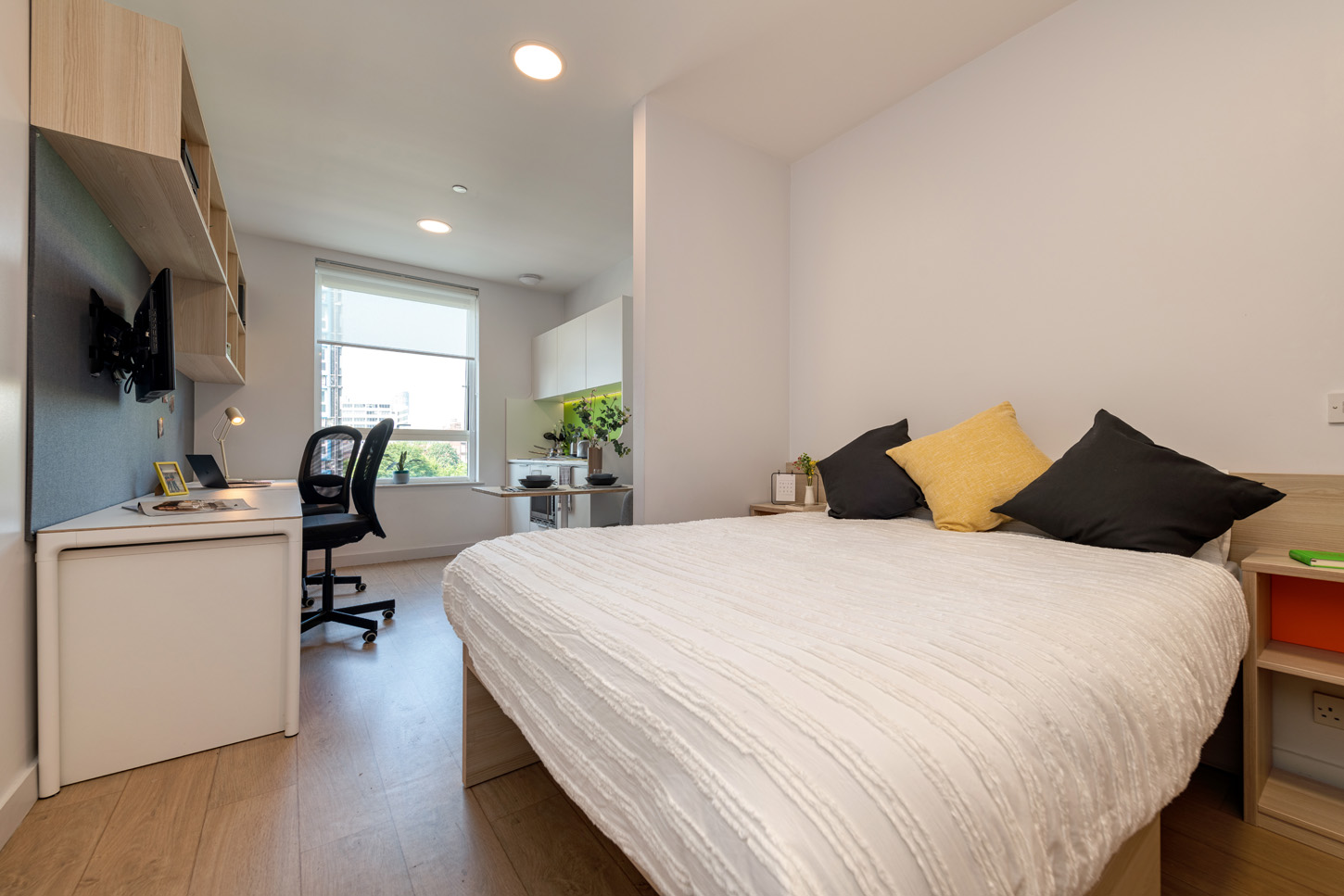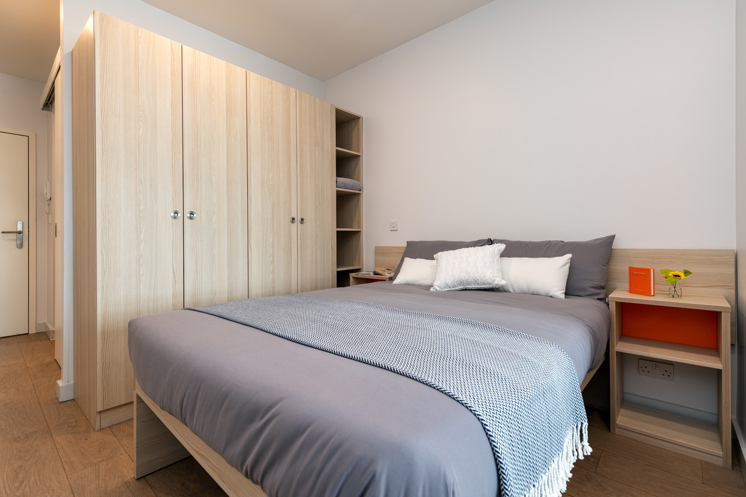 This student accommodation provides studio rooms. Expect a Wi-Fi connection, CCTV camera security and a double bed. There is a 24/7 on-site staff available at the beck and call of students.