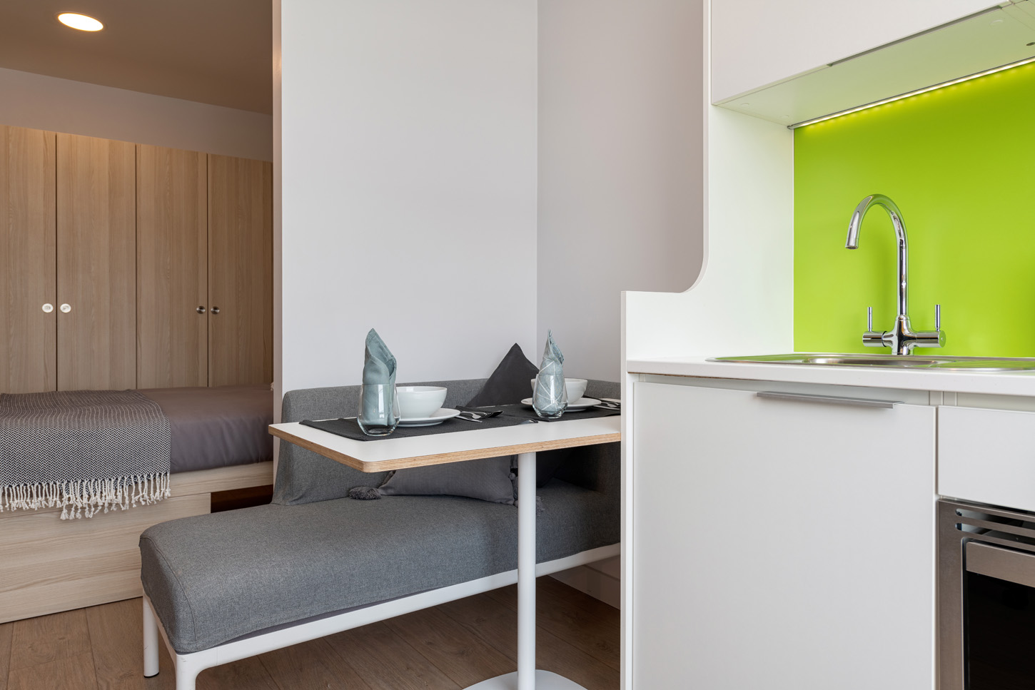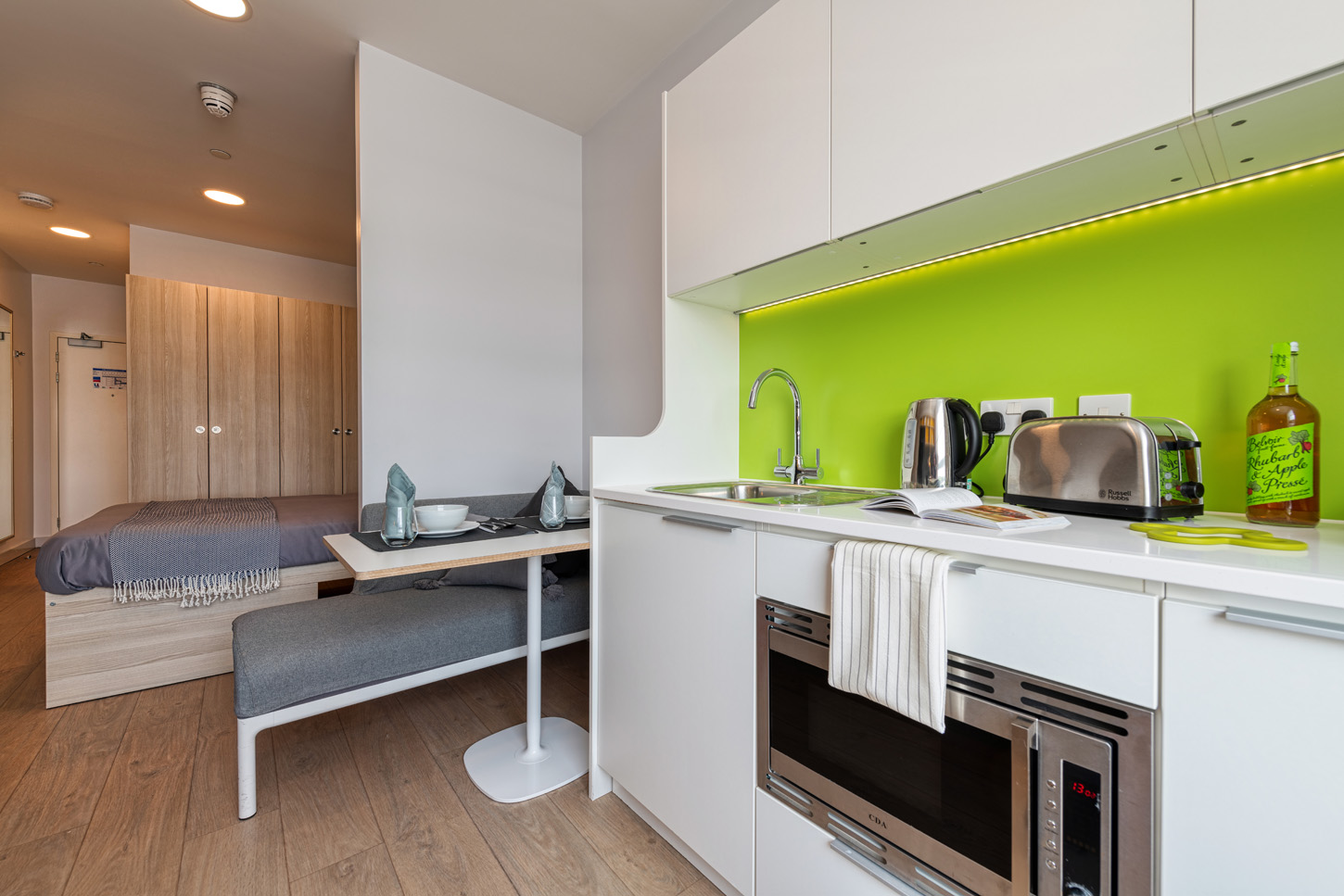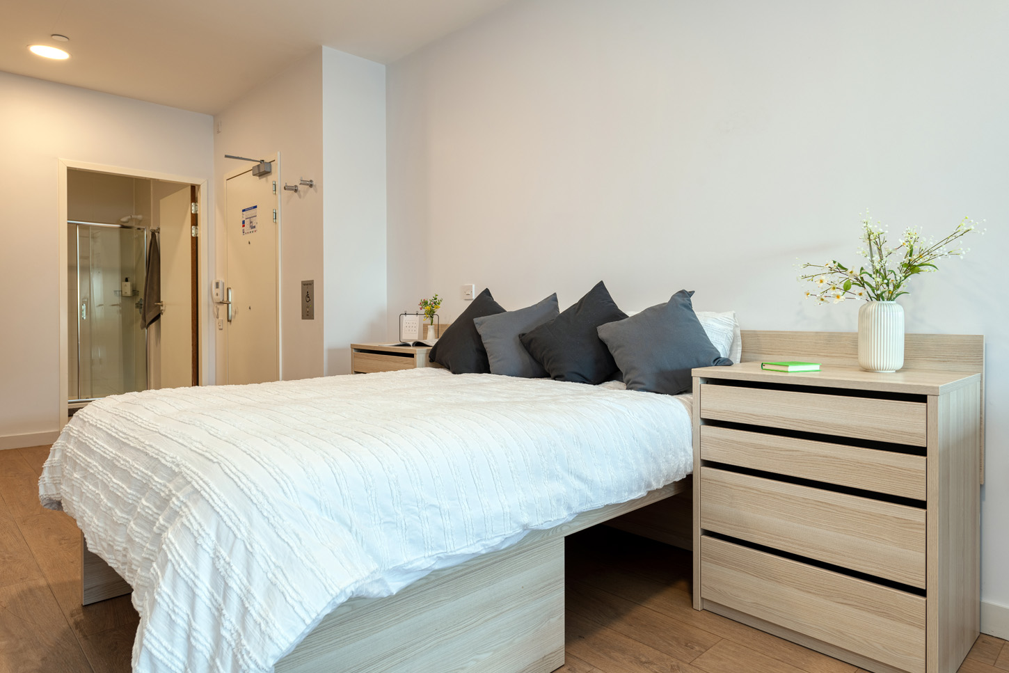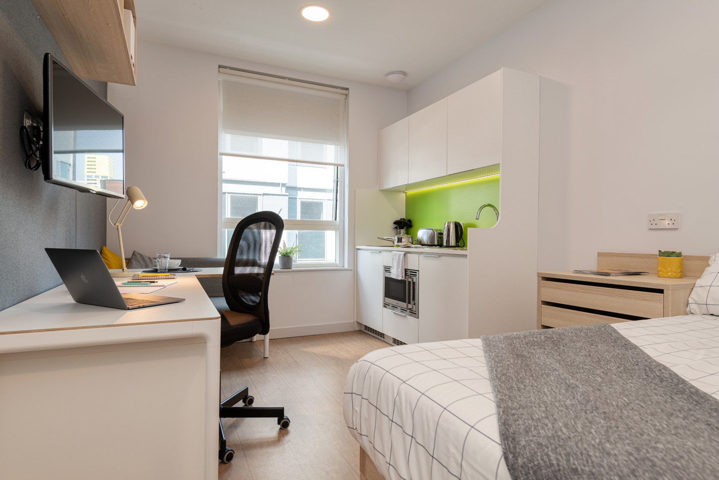 This student accommodation provides studio rooms. Expect a Wi-Fi connection, CCTV camera security and a double bed. There is a 24/7 on-site staff available at the beck and call of students.