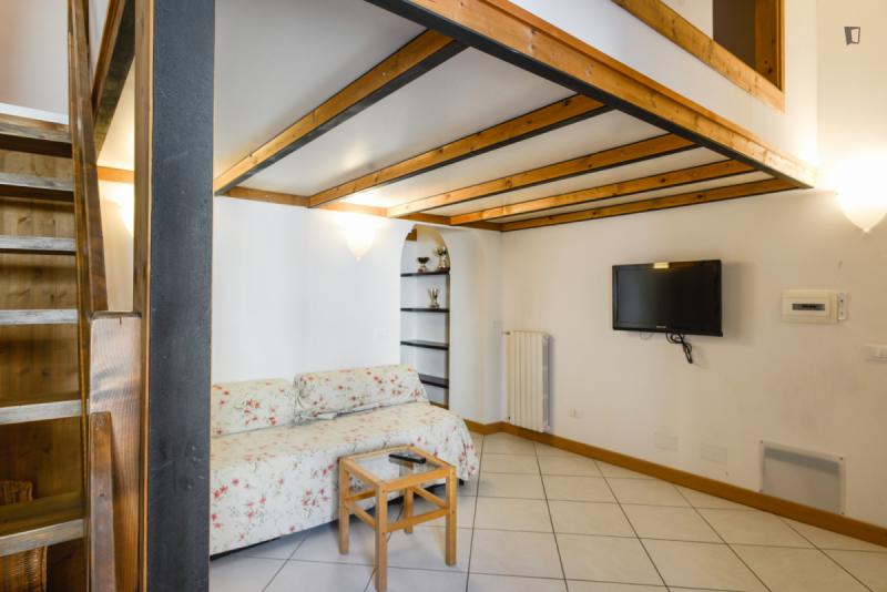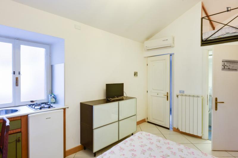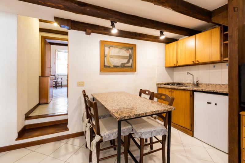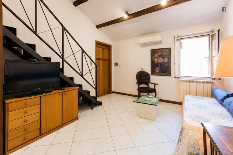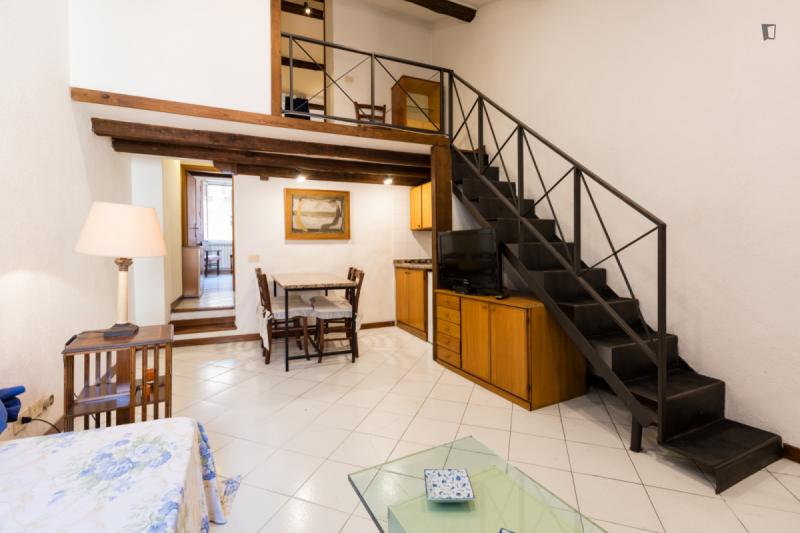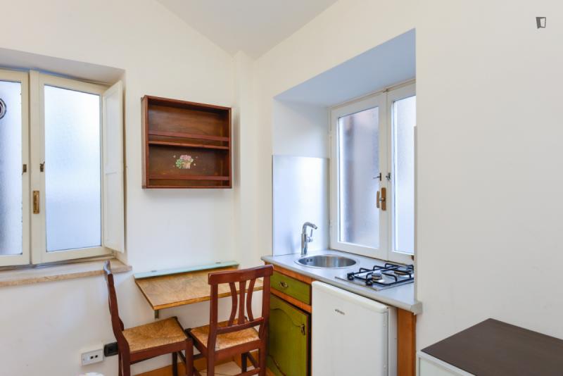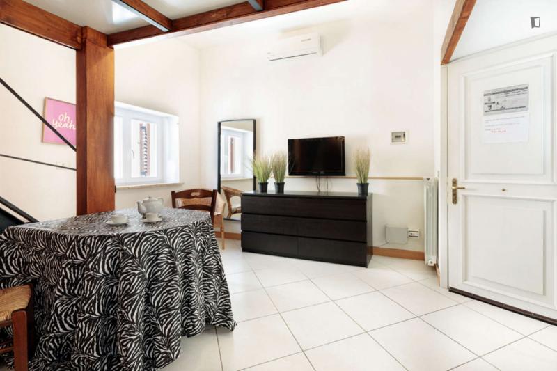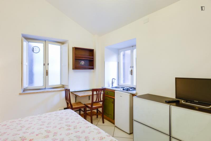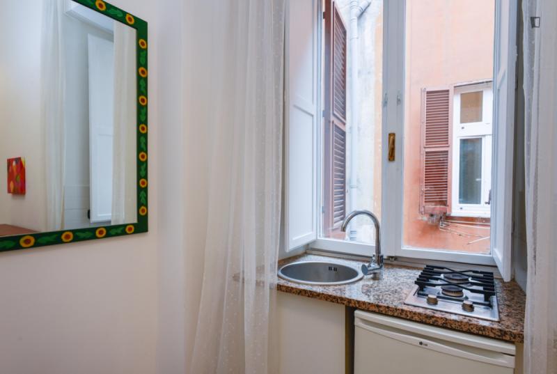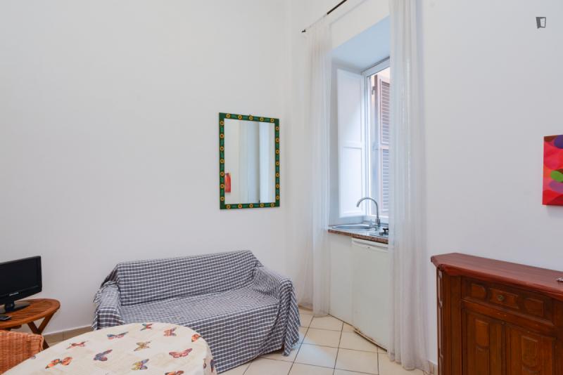 The property – which is placed near universities, such as Pontificia Università della Santa Croce and Pontificia Università Gregoriana, among others – will provide you with a bedroom area with a double bed, a roomy living room are where you can relax which also shares its space with a small but functional kitchen and finally, a bathroom. So, since this places gathers all that is needed for an awesome experience, why wait? Go for it!