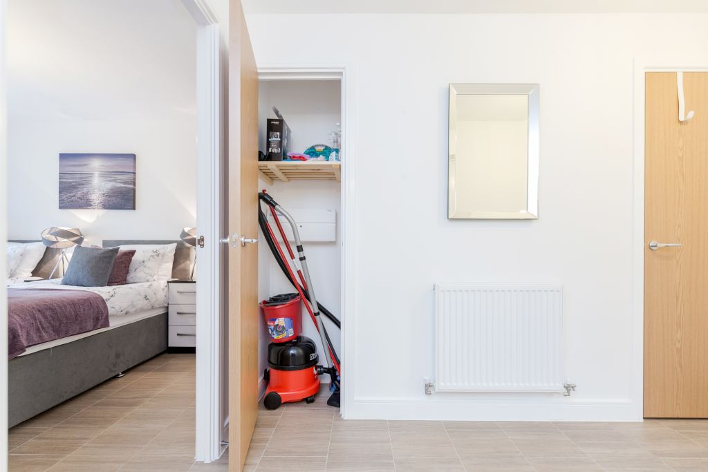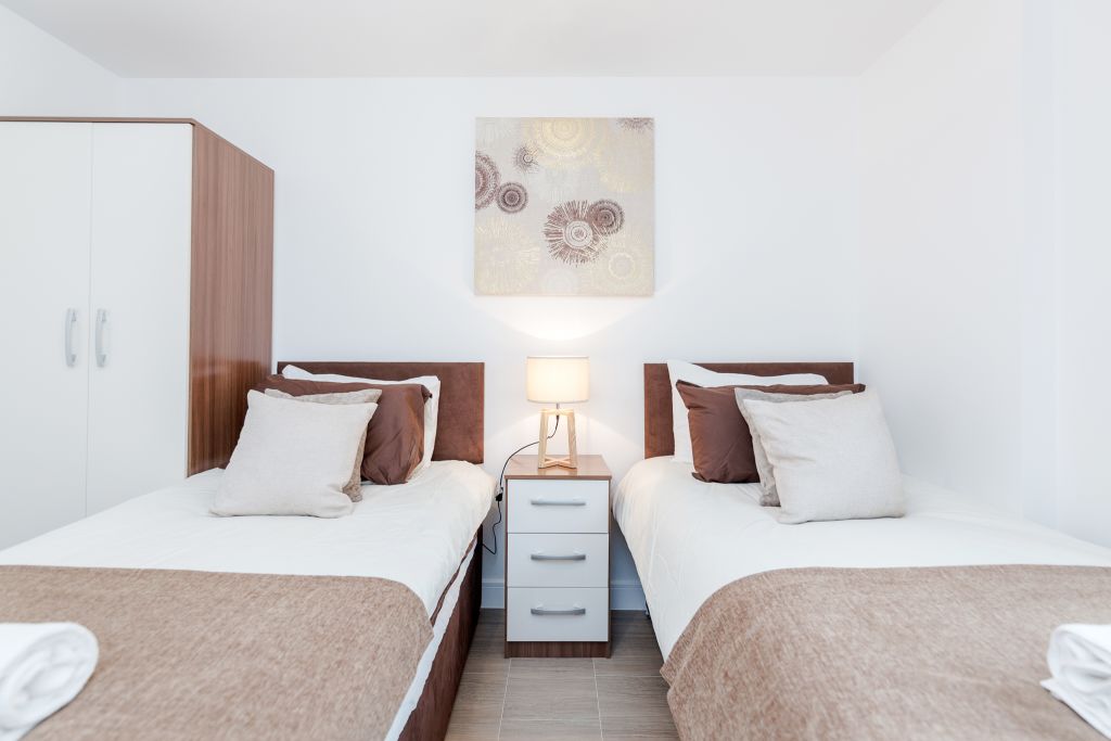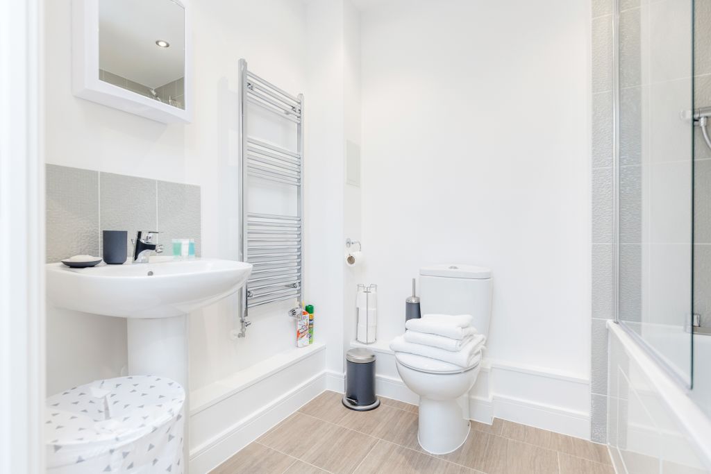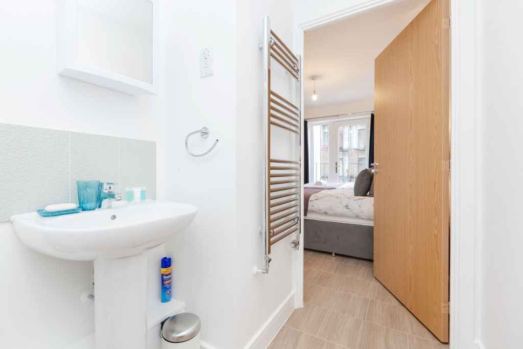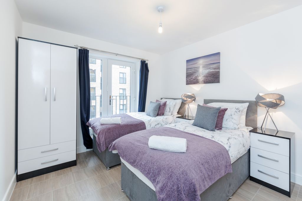 This a 2 bedroom 2 bathroom apartment within a block of flats in a quiet neighbourhood within 10mins walk to Romford City Centre and Romford Train Station. With double fob access and video entry for improved security you enter into the flat itself with key access. You are greeted by the hallway; to the right is the storage space for cleaning supplies, jet wash for the balcony, mop and bucket, hair dryer, iron, first aid box and the vacuum. The bedroom with en-suite shower is right across the hallway. This bedroom contains 2 single beds which can be zip and linked to a king sized bed. Turn left and you have access to the other bedroom also with 2 single beds which can be zip and linked and the main bathroom suite. Further down and you are led to the open plan kitchen dining and lounge area which leads to the balcony. The balcony provides views and an area to relax for some fresh air. The living room has desk space, sofa bed, a tub chair, dining table and chairs and a kitchen fully equipped with kitchen utensils, fridge/freezer, microwave, oven, kettle, toaster, first aid kit and fire blanket, oven, washing machine and the line dryer and ironing board etc. The apartment gives a welcoming home away from home feel.Notice: Displayed prices and data are not final, and should be used for informative purpose only. They are not contractual or binding. Energy pass This building is not subject to EnEV.