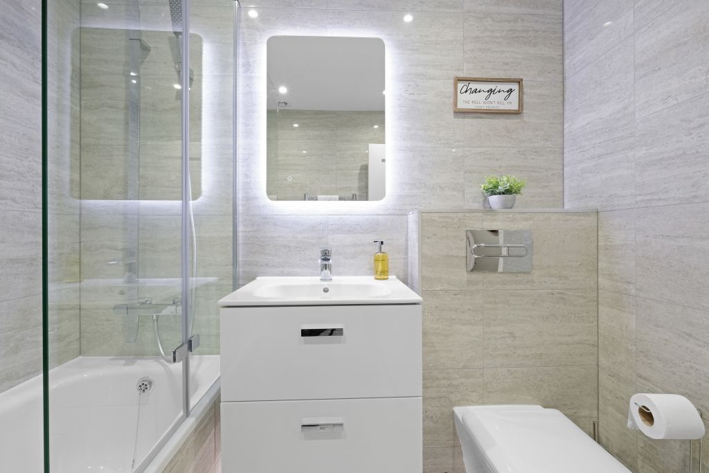 3 Bedroom 2 Bathroom Luxury Apartment in Shepperton is a three bedroom, two bathroom superior apartment with parking and and Wi-Fi. The main bedroom has a Super king-size bed, bedside tables, a wardrobe, Desk & Chair and Smart TV. Second bedroom has two single beds, a clothes rail, bedside tables and, third bedroom has a king size bed, hang rail, bedsides, The family bathroom has shower over bath and an en-suite bedroom 1. Kitchen is fully equipped including Fridge/Freezer, Dishwasher, Washing machine, Microwave, Kettle, Toaster, etc.Notice: Displayed prices and data are not final, and should be used for informative purpose only. They are not contractual or binding. Energy pass This building is not subject to EnEV.