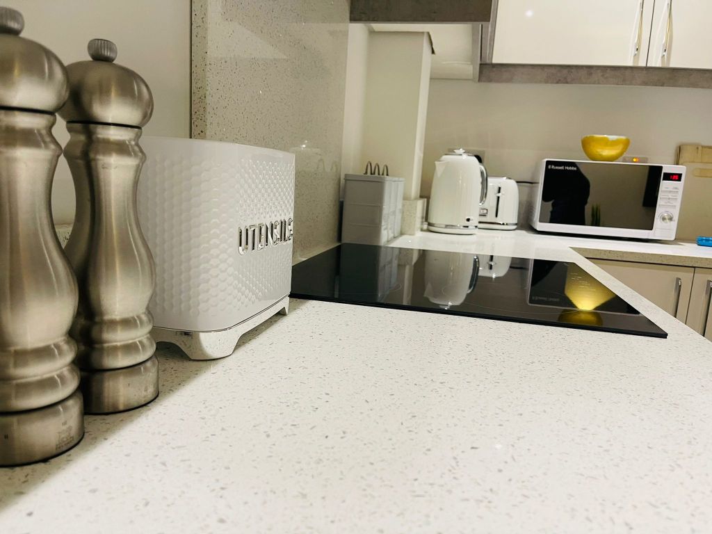 Luxurious, Modern and Brand New! All BILLS, WIFI and WEEKLY CLEANING with BED LINEN and TOWELS CHANGES are INCLUDED in the price! This ground floor (no steps!) 2 bedroom 1 bathroom apartment is fully furnished to a high standard (see list) and includes private parking. The tiled marble bathroom has a bath with shower over head. There are plush carpets in both bedrooms with Smart flat screen TV´s and fitted wardrobes. Our luxury Italian sofa will make your relaxation time extremely comfortable and our dining table can also be used for work purposes. The fully fitted designer kitchen has all the mod cons (see list) to make your stay pleasurable.Free Wifi is available.Free weekly cleaning, bed linen and towel changes are all included!Free final clean included (additional cleaning is available for an extra fee).Free final clean towels and linen laundry service (additional cleaning is available for an extra fee).Free washing machine use in the apartment is included.2+ Months = 5% Discount! Notice: Displayed prices and data are not final, and should be used for informative purpose only. They are not contractual or binding. Energy pass This building is not subject to EnEV.Fast train from Slough to Central London, just 14 minutes to Paddington Station!Heathrow, Windsor Castle & Royal Windsor Racecourse are all within 15 mins drive.Slough is a large town in Berkshire, England within the historic county of Buckinghamshire, 20 miles (32 km) west of central London (Charing Cross) and 19 miles (31 km) north-east of Reading. It is in the Thames Valley and within the London metropolitan area at the intersection of the M4, M40 and M25 motorways. Slough had a population of 164,000 in 2018, fast growing with continuous improvements and developments as it is so well connected. Only 18 minutes to Heathrow Airport by car and 30 mins by train. Salt Hill has become a sought after location especially for those working in the area, visiting Legoland or commuting to London.