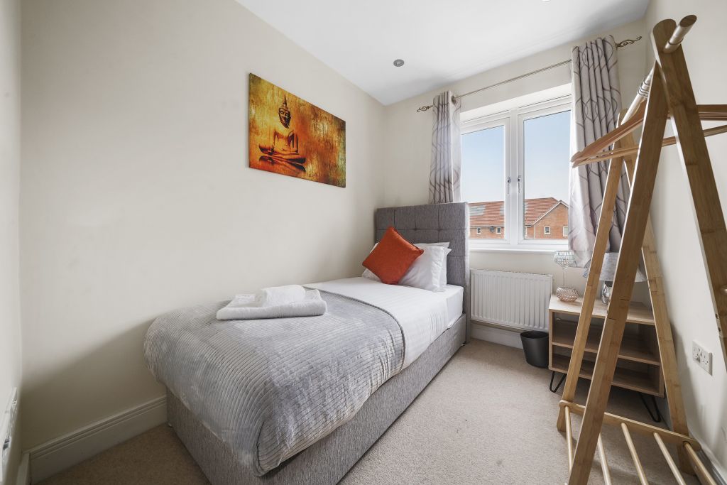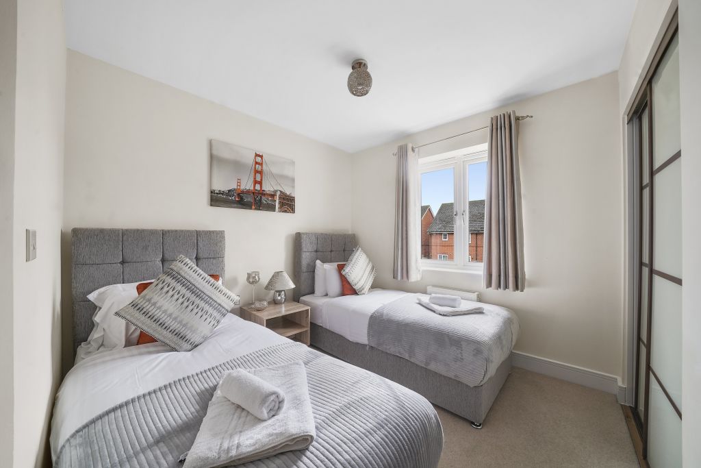The property is located immediately south of London Heathrow Airport – and because we are perpendicular from the runways we do not suffer from airplane noise, unlike those properties close to the flight path! Situated in a cul-de-sac, with a children’s playground opposite, it is a surprisingly quiet and relaxed location. There is a general grocery convenience store some 200m north along Long Lane, and a vast 24 hour Tesco supermarket next to Ashford Hospital about 600m away. Transport links include tube stations at Terminal 4 and Hatton Cross, or the overland rail service at Ashford Station. Although many of our guests are transitting through London Heathrow Airport, or working at places such as Bedfont Lakes, a few hundred metres away, there are also plenty of other attractions and interesting places around the area, including Thorp Park, Legoland, and the historic town of Windsor, plus of course access to all of London by tube.