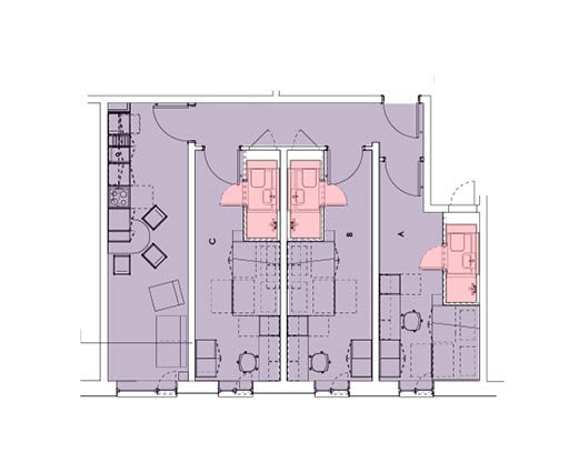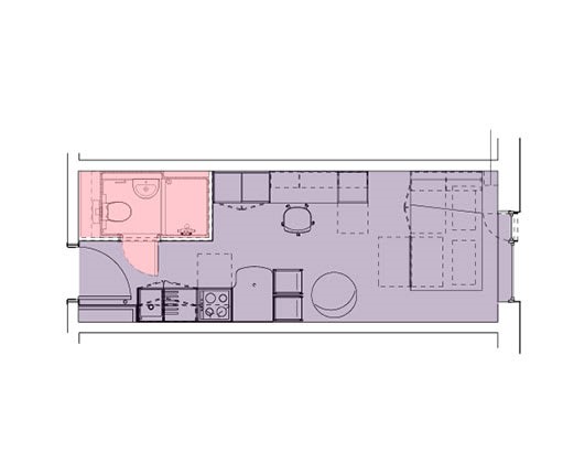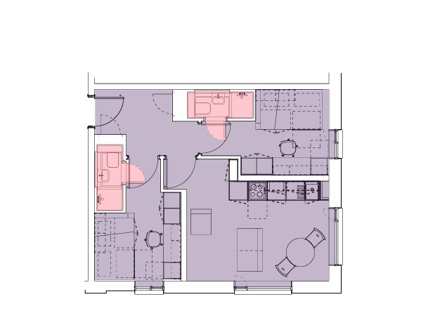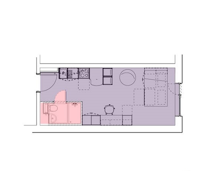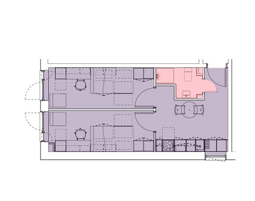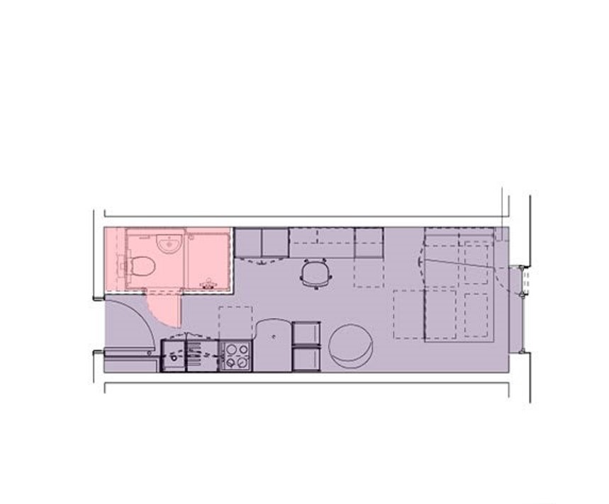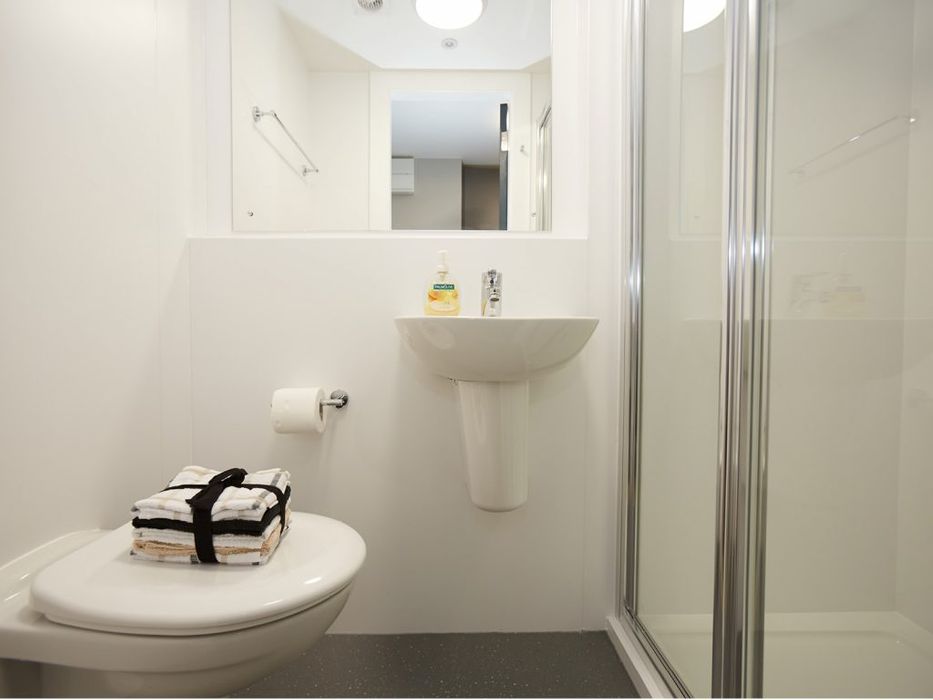 Located on floors 0-5, our three bed apartments come with a shared kitchen and living area equipped with a TV, and your own bedroom. Each room comes with a small double bed, loads of storage and workspace and your very own en-suite shower room. Average room size is 13-15sqm.