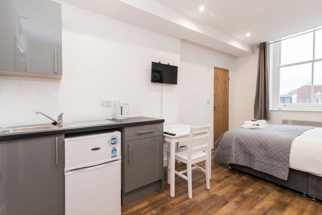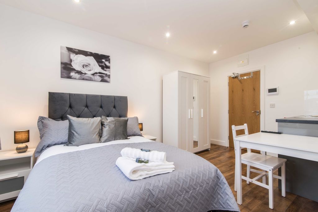 The Abberley is a stylishly furnished on the 3rd floor in this easily accessible and convenient location in Hanley, Stoke City Centre. The functional studio has a single bed and is suited to a solo traveller either on business or leisure.The apartment is fully equipped with a kitchenette, crockery and silverware for you to fully cook up a meal. It benefits from a smart TV, Netflix, Free Hi-Speed Wi-Fi, work desk and small dining table. You will have the entire apartment to yourself.Notice: Displayed prices and data are not final, and should be used for informative purpose only. They are not contractual or binding. Energy pass Energy pass not available, yet / In application process