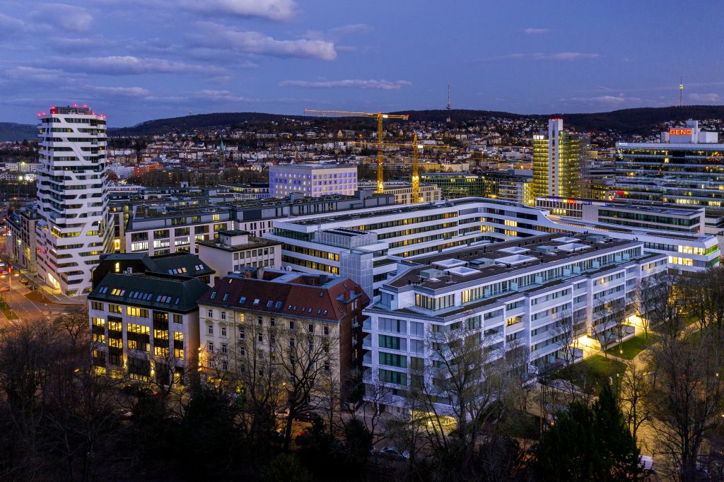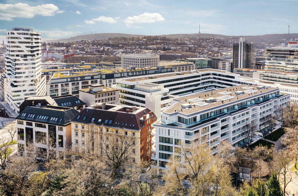 The main station, which can be reached by underground or bus, is only two minutes away. If you prefer to come by car, you may park in our underground parking garage, which takes you directly onto the B27 – Stuttgartās main thoroughfare. This lively quarter, in immediate proximity to the city centre, unites the spirit of urban living, unique architecture and lush green parks. Welcome to Europaviertel!