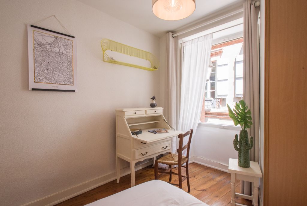 Compositions: 1 Bathroom, 1 Bedroom, 1 Kitchen in the living / dining roomAmenities: 1 fridge, 1 shower, 1 Towels, 1 wardrobe, 1 Drying Rack, 1 heating, 1 double bed, 1 Free Wireless Internet, 1 FREE internet access, 1 kitchenette, 1 electric kettle, 1 dining table, 1 Cookware & Kitchen Utensils, 1 toaster, 1 microwave, 1 Crockery & Cutlery, 1 coffee maker, 1 Paid parking on the street, 1 No Smoking Rooms/Facilities, 2x cooking hob, 1 Hair Dryer, 1 Bed Linen & Towels, 1 Bed Linen, 1 Kitchen, 1 Washing Machine, 1 Cable TVNotice: Displayed prices and data are not final, and should be used for informative purpose only. They are not contractual or binding. Energy pass This building is not subject to EnEV.Come and settle in this adorable little cocoon, located in the heart of the historic center of Les Carmes, the oldest district of Toulouse, just a few steps from the Place des Carmes. This completely authentic and fully equipped apartment, with a contemporary and very neat decoration will seduce you with its parquet floor, its interior wooden shutters and its layout. The apartment overlooks a small quiet street in the Toulouse city center. Historic sites and monuments, restaurants and shops are at the foot of the building.