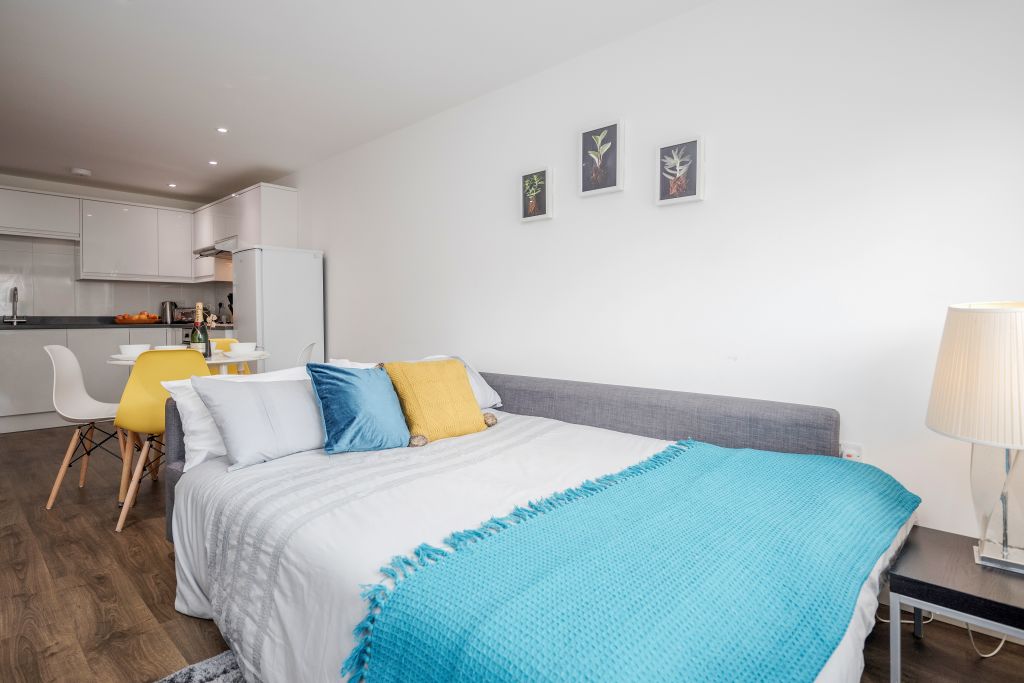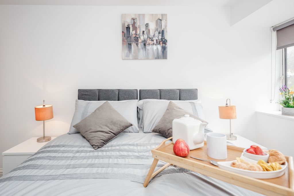 This is a Town Centre modern apartment that comes fully furnished with all the necessary home appliances and is within reach of restaurants, local entertainment and a shopping mall for the convenience of our guests. It has a spacious open plan kitchen and lounge which is ideal for socializing or as work space. The bedroom can be set up either with a king-size bed or two single beds depending on the guests preferences. A sofa-beds in the lounge are also available for extra paying guests. Additionally we use high quality cotton white linen of hotel standards which are professionally cleaned and our properties are professionally deep cleaned after every stay. Notice: Displayed prices and data are not final, and should be used for informative purpose only. They are not contractual or binding. Energy pass This building is not subject to EnEV.